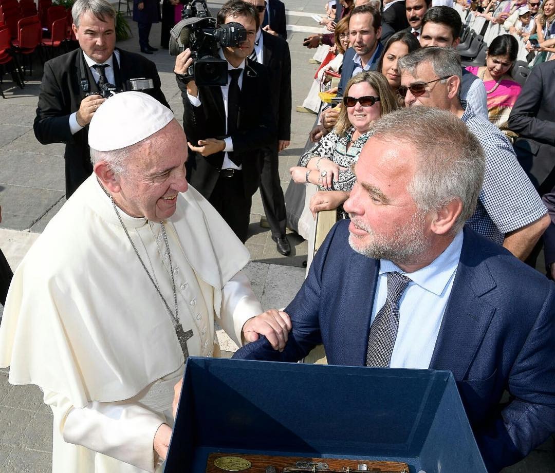 Увы, разговор продолжался, как мне показалось, секунд 30. Но это были одни из самых эмоционально насыщенных секунд в моей жизни. Пожать руку, что-то сказать и вручить подарок самому Папе Римскому!