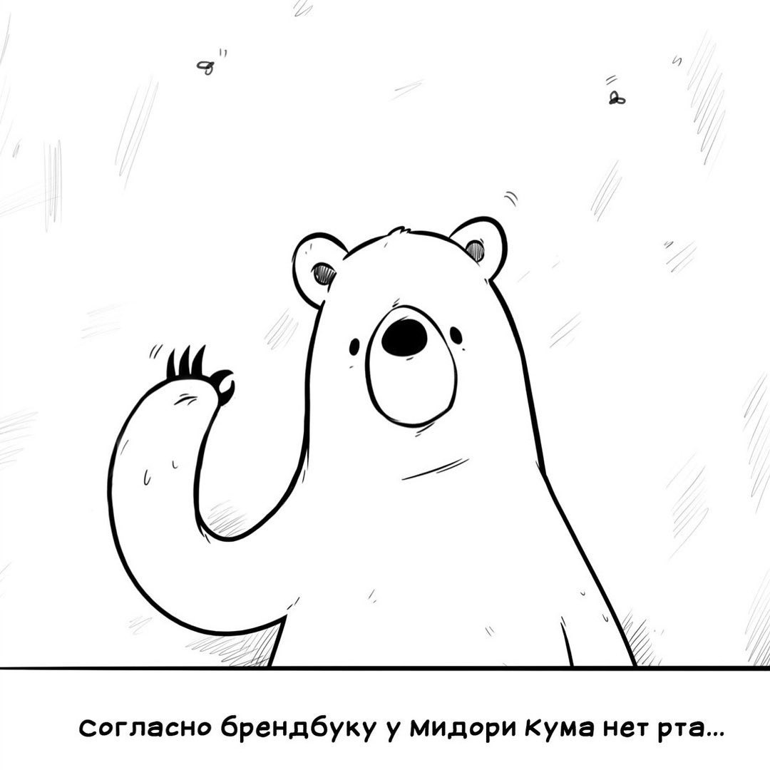 По легенде У Мидори Кумы нет рта. Я не знаю почему — ответ находится где-то в мозгу одного японского дизайнера, придумавшего сего персонажа. Да: предупреждая возможный троллинг со стороны «гусарствующих» читателей, сразу замечу — ответа на вопрос «чего ещё нет у Мидори Кумы?» у легенды тоже нет :)