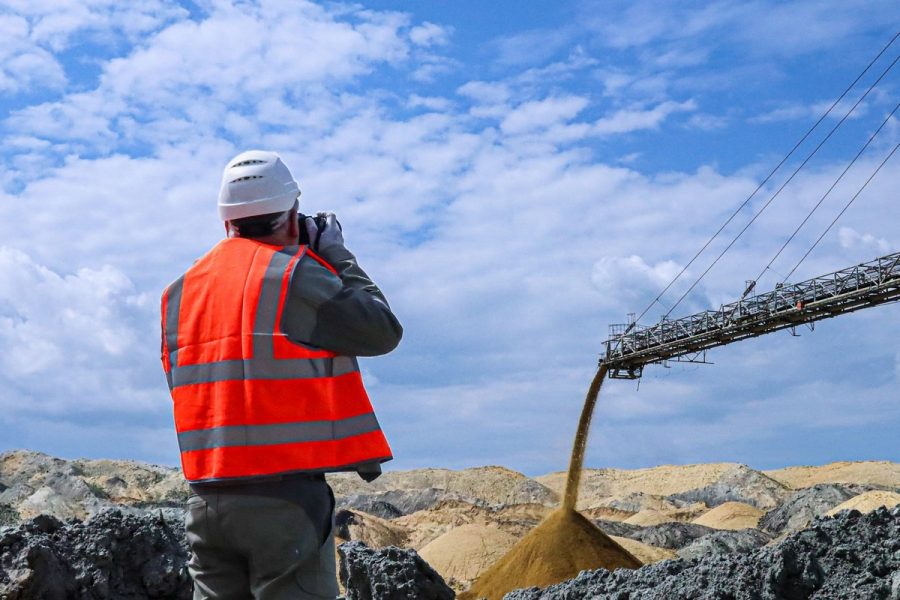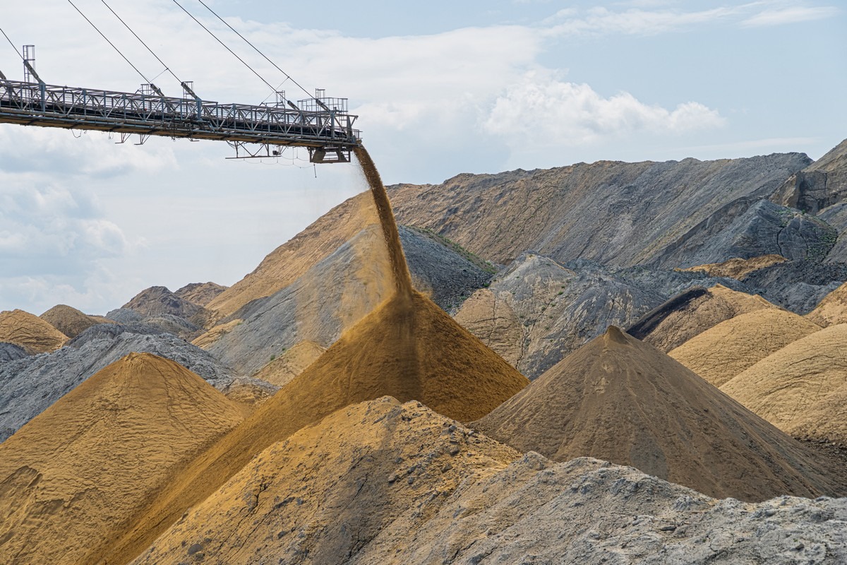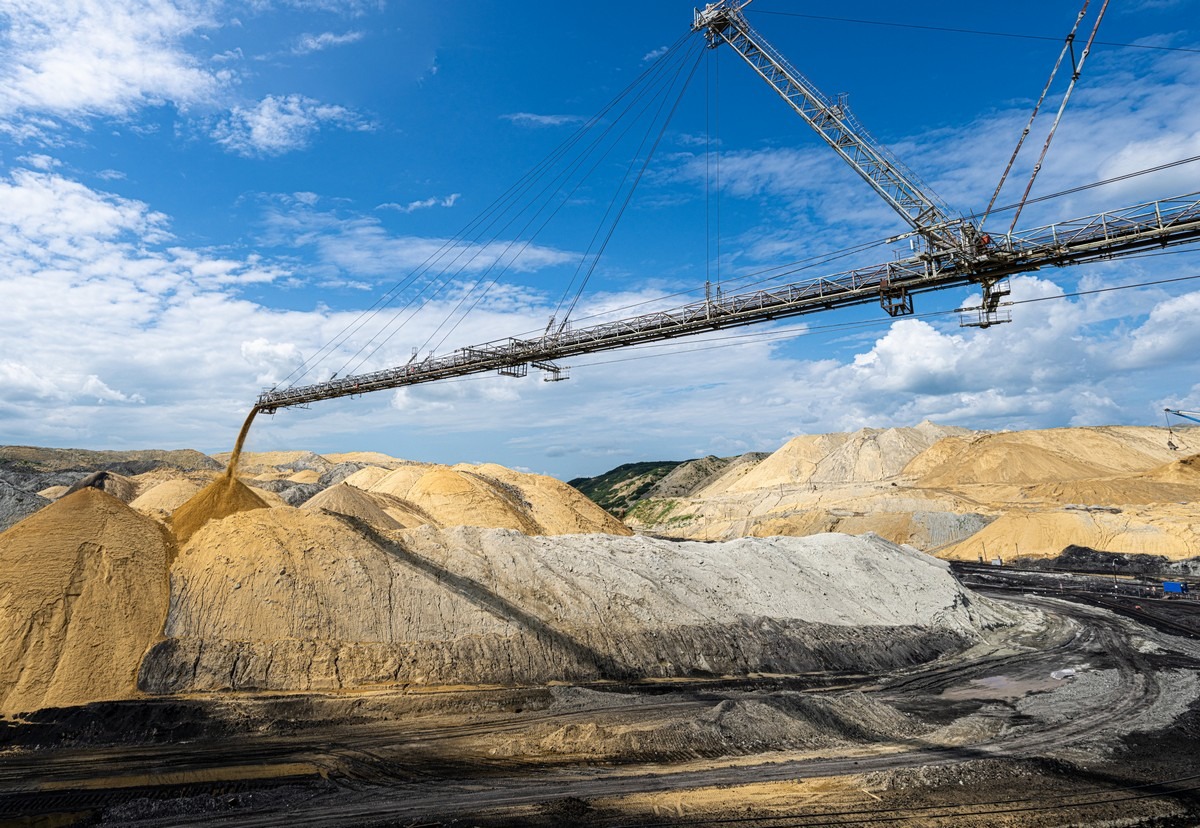 И далее 200-метровая стрела выкидывает добытое в отвал: