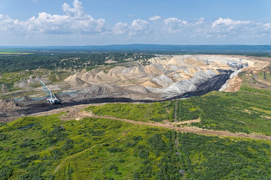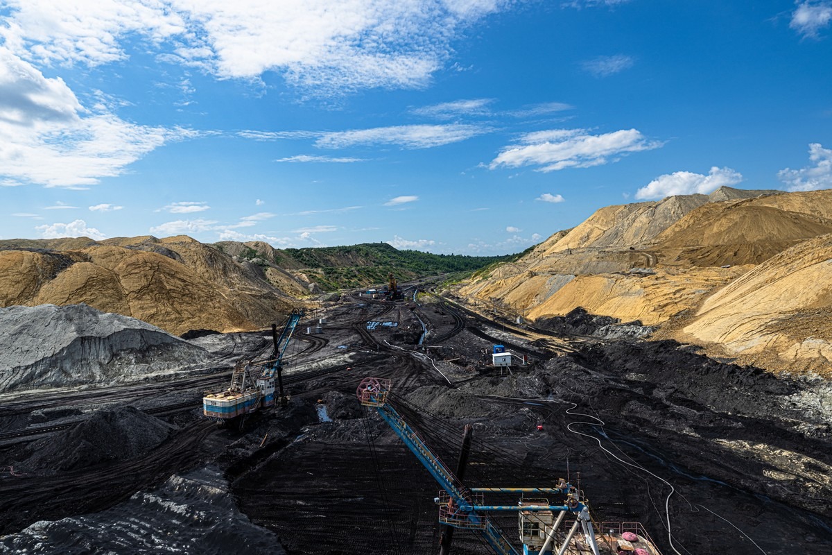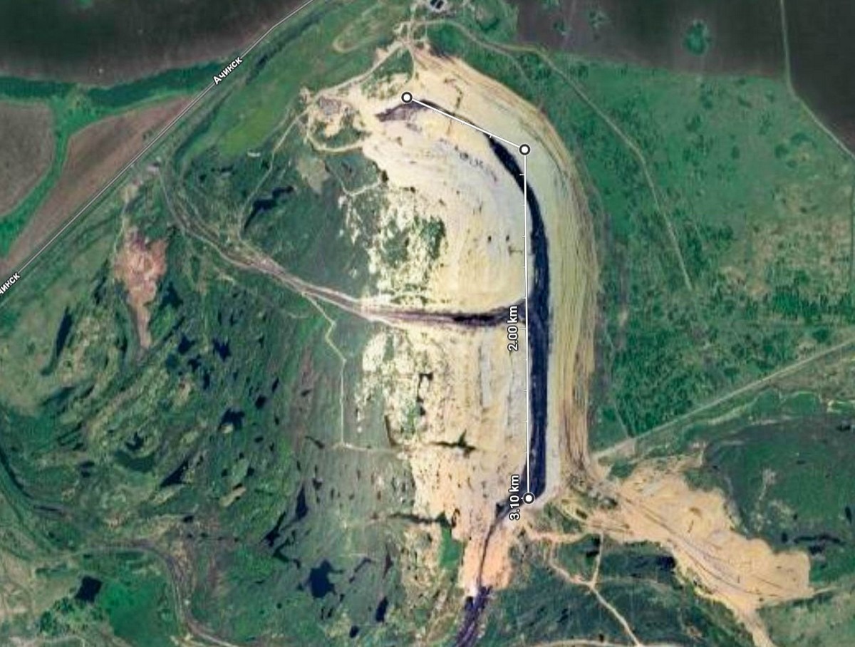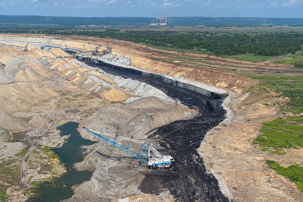 Пласт угля (толщиной около 15 м) лежит под 70-метровым слоем пустой породы (горняки называют его «вскрышей»). Так вот, перед добычей угля эту «вскрышу» надо снять и отгрузить в отвал, затем добывается очередной слой угля, по железной дороге отправляется заказчикам, снимается очередная часть «вскрыши» — и так по циклу. То есть этот разрез представляет из себя примерно трёхкилометровую линию добычи угля, где с одной стороны — многолетний отвал, а с другой — ещё не вскрытые пространства, под которыми лежит этот самый уголь. И эта линия постепенно движется по направлению на восток: