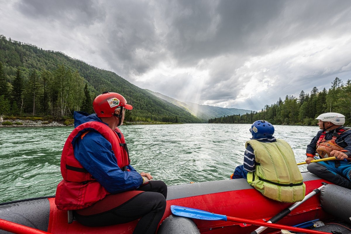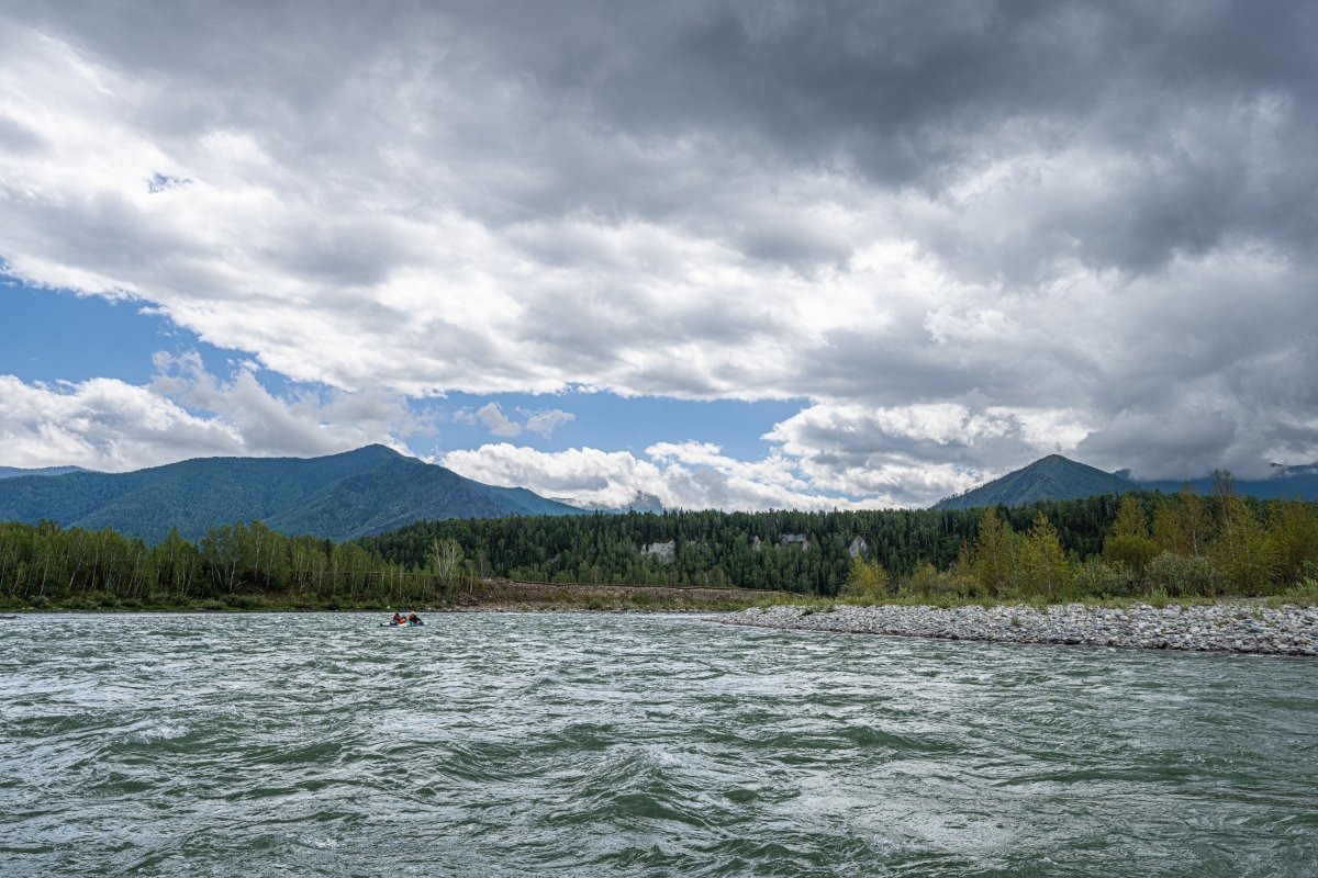 Сегодня в программе – снова Алтай! Продолжается «ленивая Катунь«, до начала максимально активного и энергичного сплава (аква-Катунь-парк!) с порогами и мощными водными валами остался один спокойный денёк. Река постепенно становится всё более активной, течение ускоряется – за тот день мы прошли около 40 км за четыре с половиной часа, то есть шли со скоростью около 9 км/час.