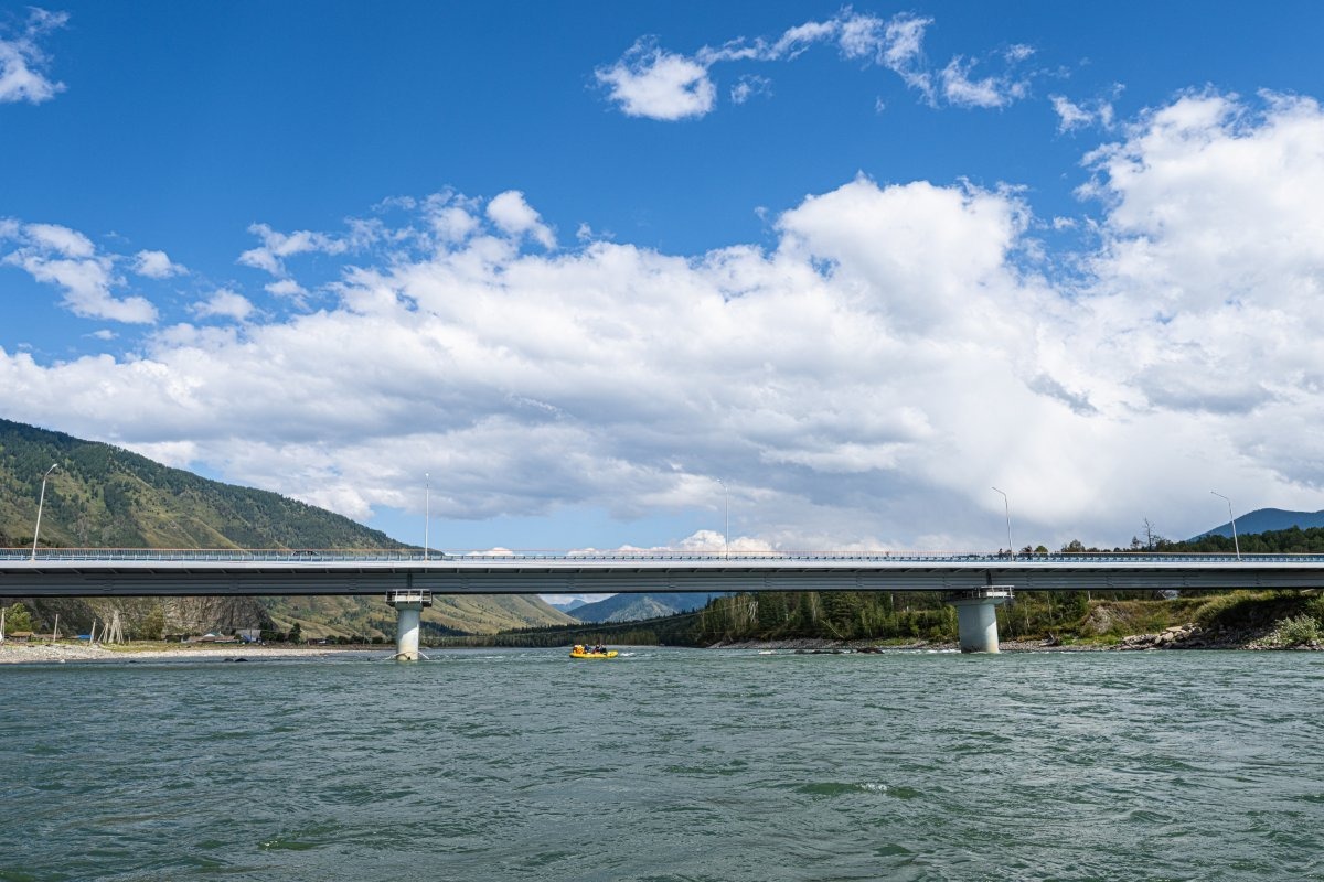 Круг нашего путешествия замыкается – вдоль реки (слева) идёт дорога в село Тюнгур, откуда начался наш пеший маршрут. То есть примерно две недели назад мы по этой дороге двигались из Горно-Алтайска к стартовой точке нашего похода: