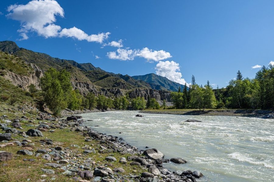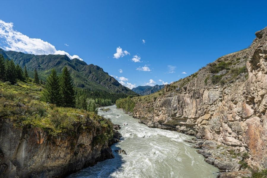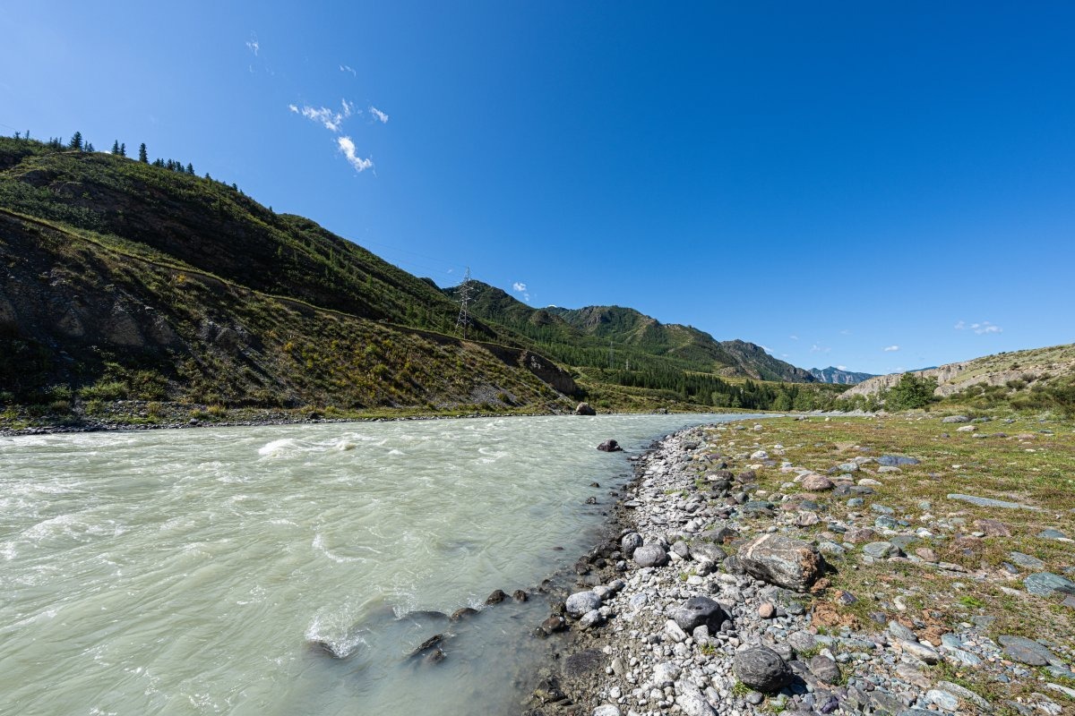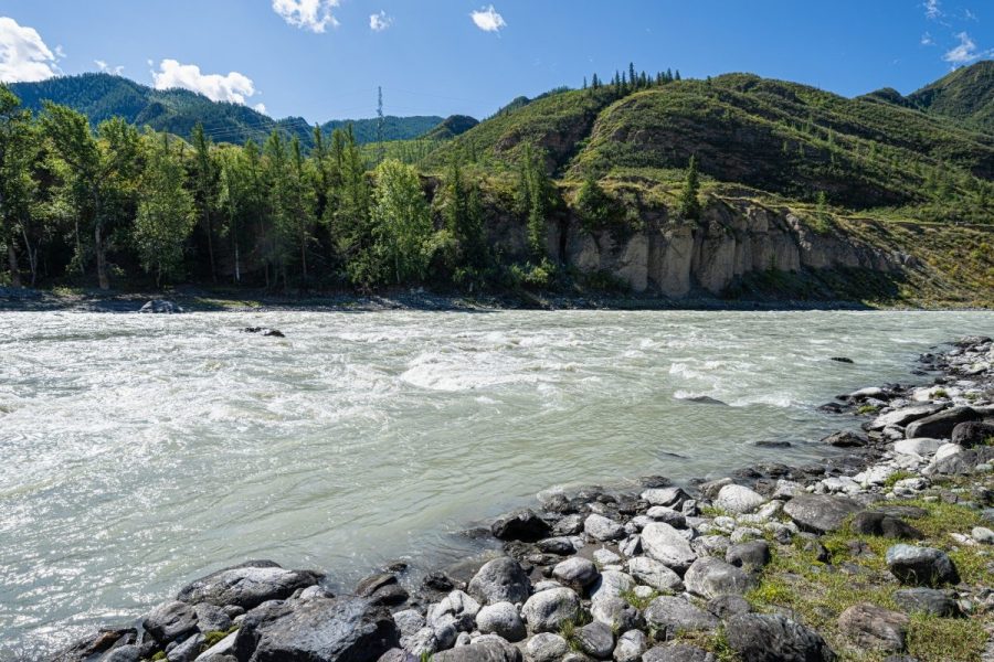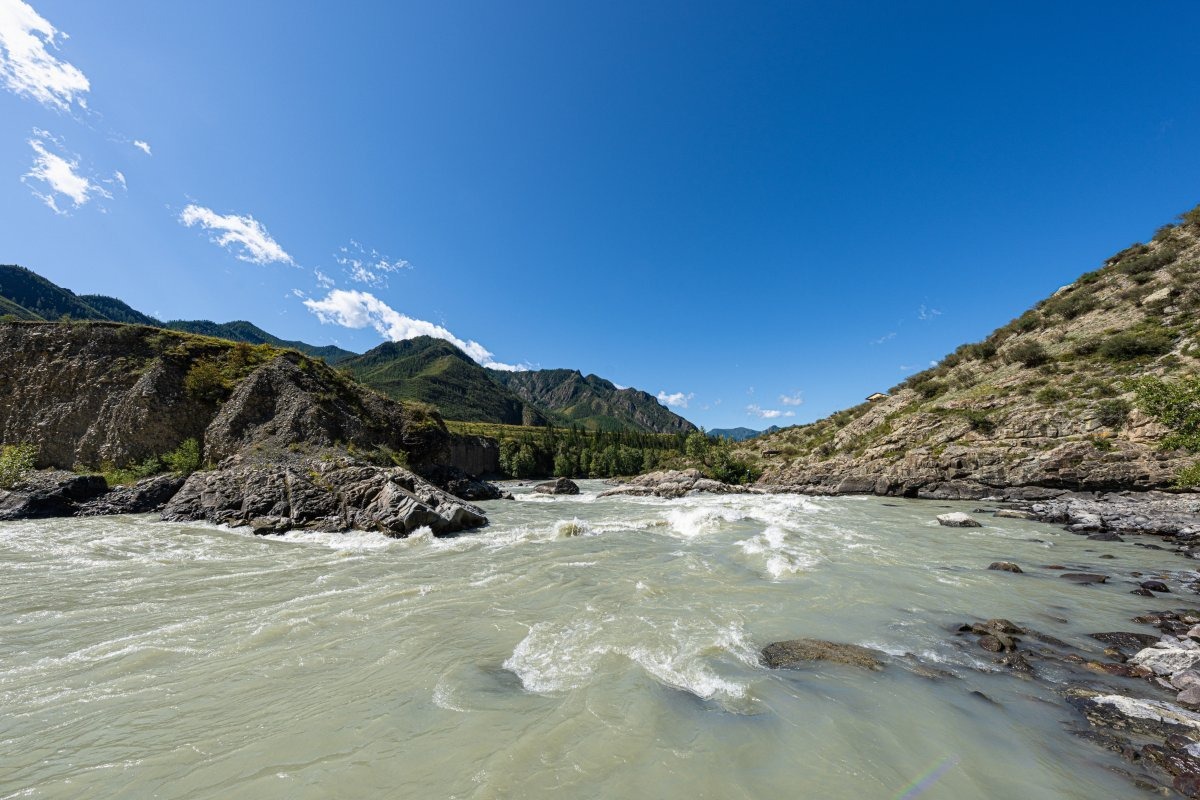Вода Катуни – бирюзовая, вода Чуи – серого цвета. При слиянии получаются вот такие картинки: