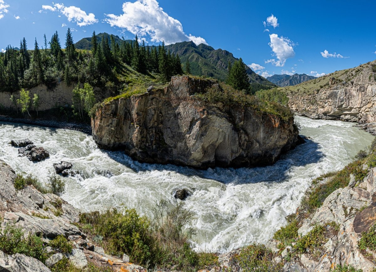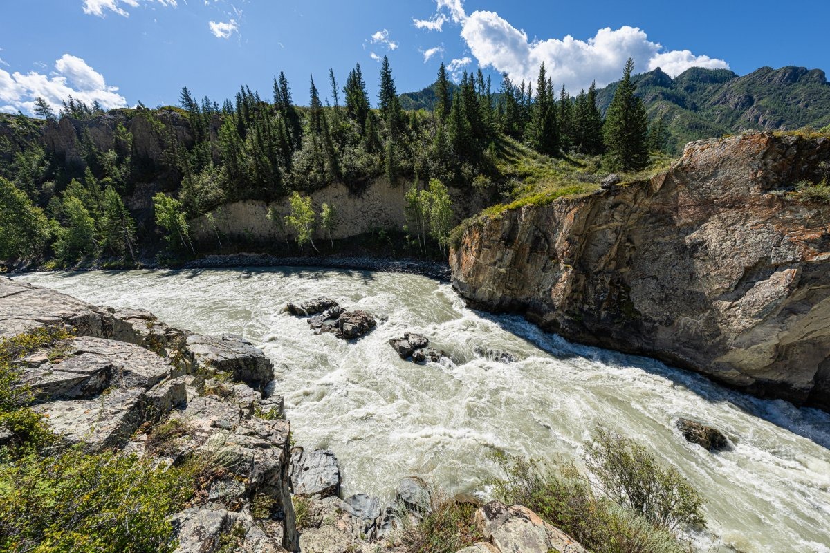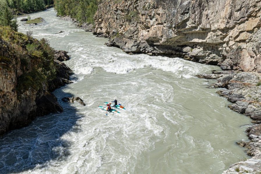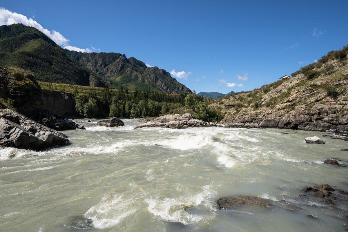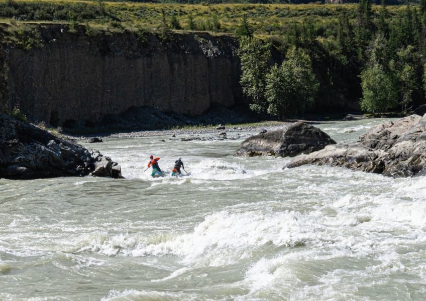 После Аккемского прорыва и спокойного дня сплава мы сделали перерыв от Катуни. Как так, почему? Просто сделать радиальный выезд в низовья реки Чуя – это очень правильная идея. А всё потому, что там совсем недалеко находятся два весьма интересных порога: Турбинный и Горизонт. Вот они, красавцы. Турбина –