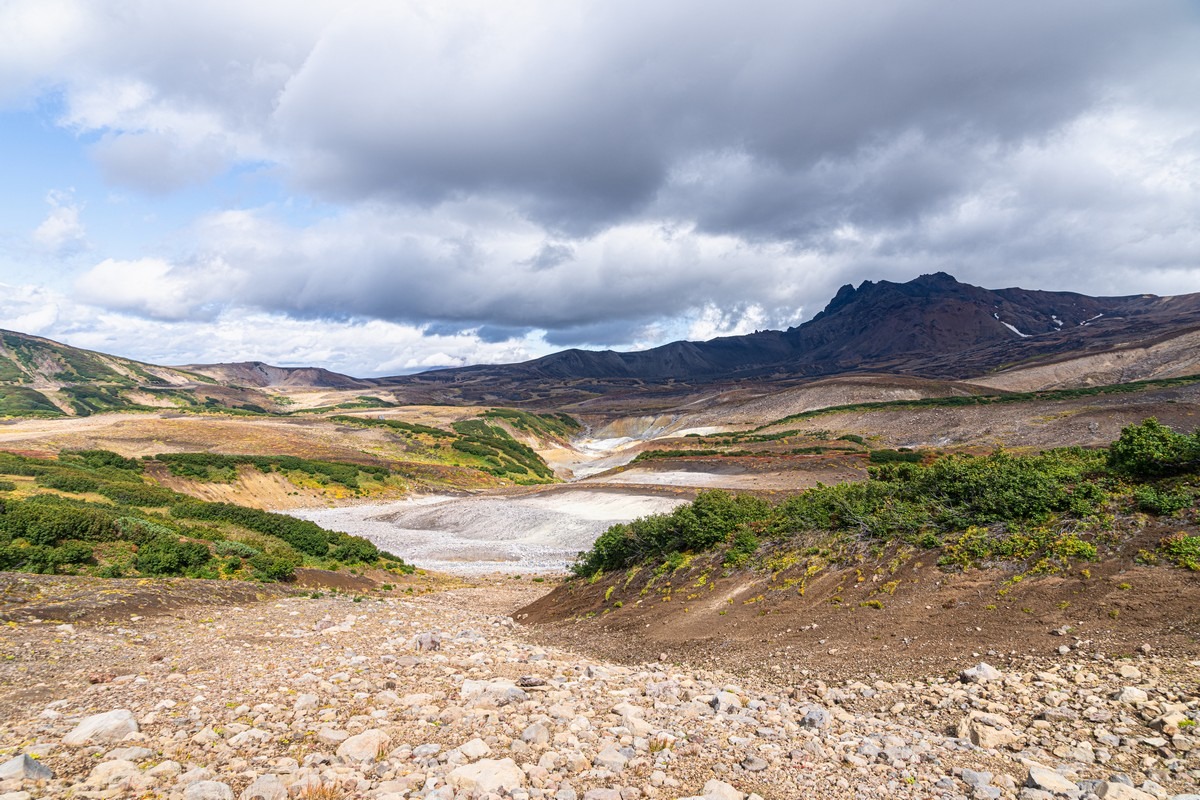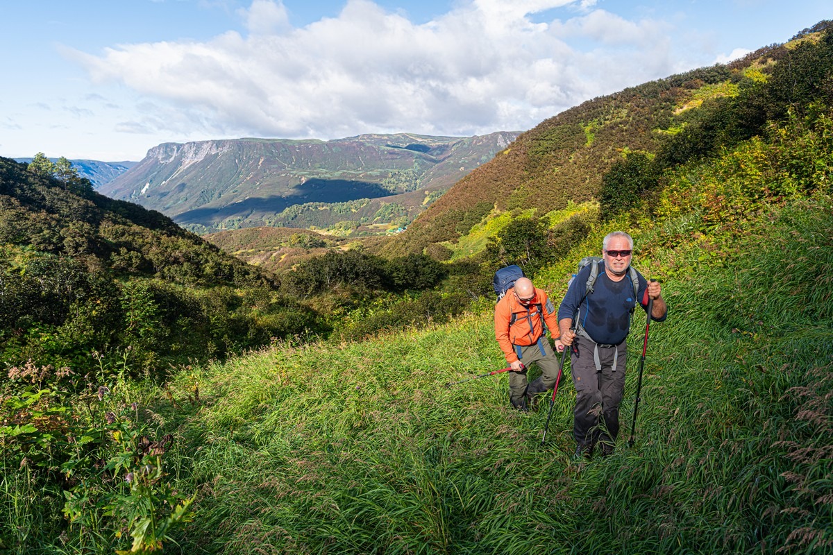 Да к тому же там идёт тропа знаменитого в советские времена пешего маршрута-264 в Долину гейзеров и обратно. Ногами до ДГ (Долины гейзеров) мы этот маршрут ходили в прошлом году — но это только половина пути. Теперь почему бы не «откусить» хотя бы кусочек его второй части? Да и виды там должны быть ой-какие-ай-вообще! (так и было) ->