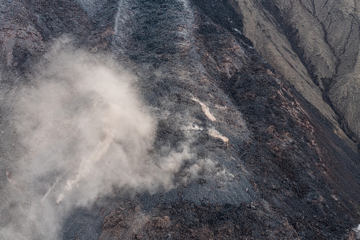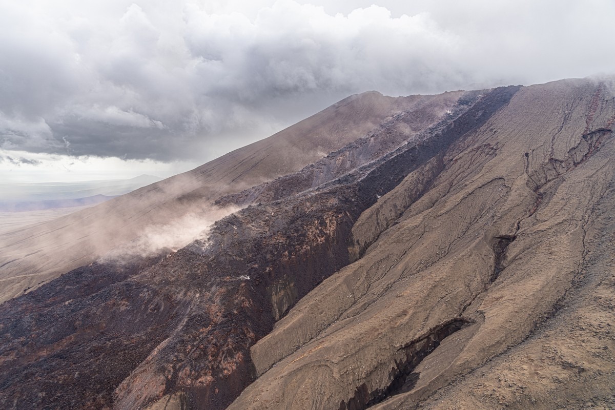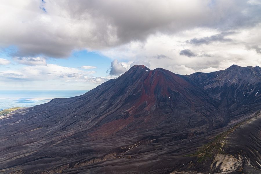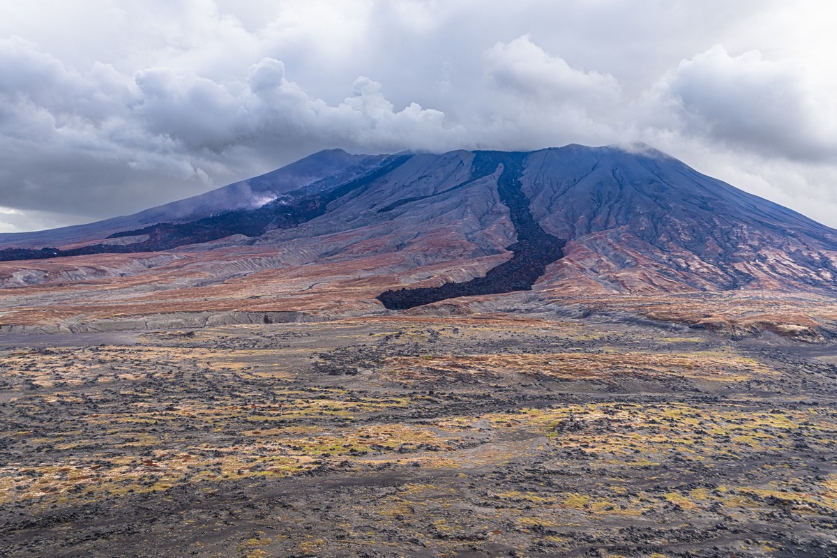 Но совсем близко подлететь не удалось — облака плотно облепили верхушку вулкана.