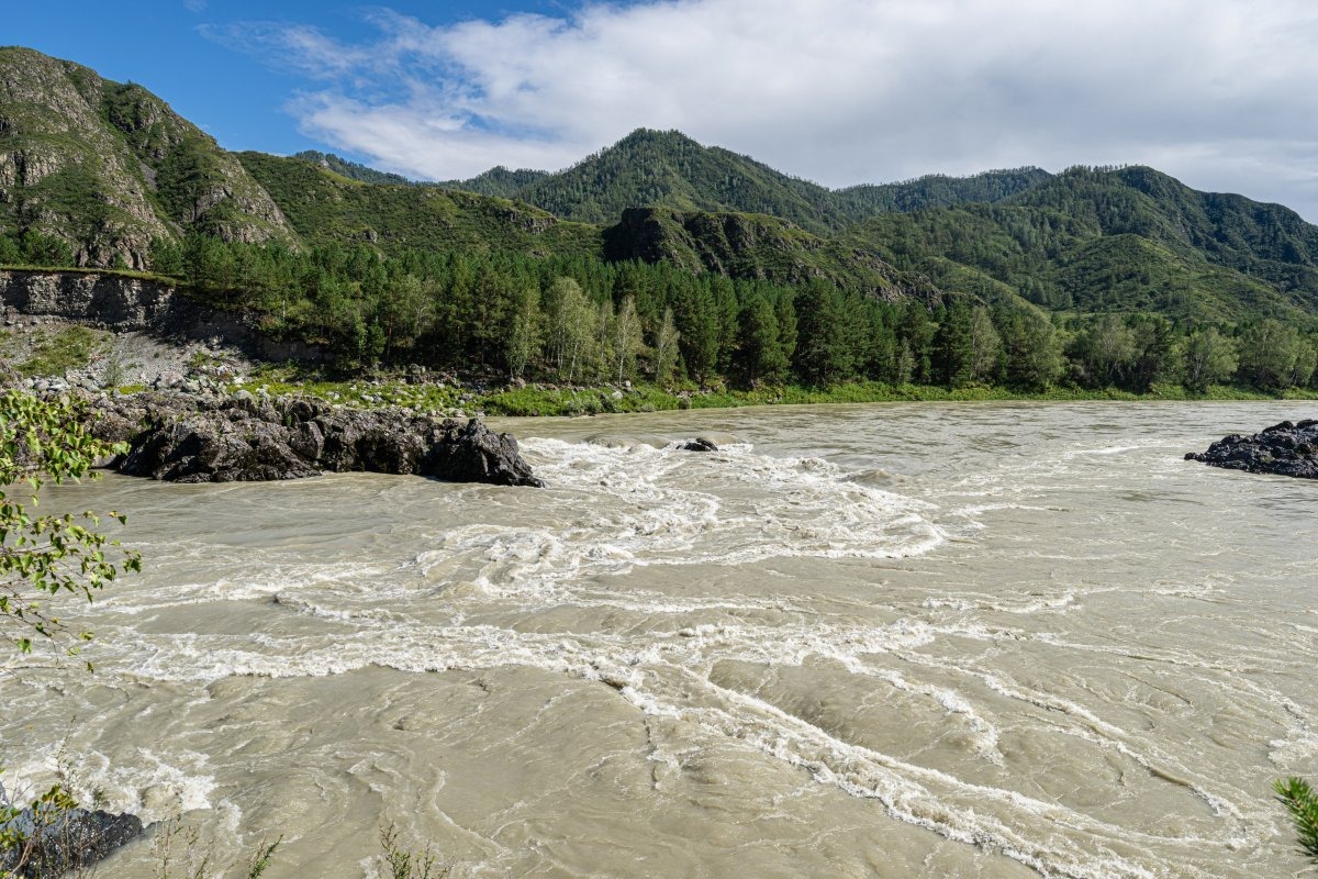 И да, такого грязного цвета вода у Катуни – это результат обильных дождей. Увы, со склонов гор несутся не самые чистые потоки.