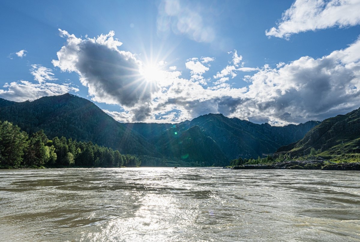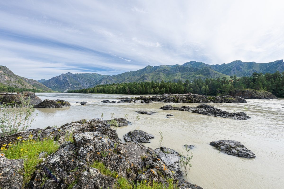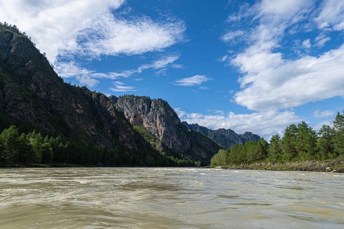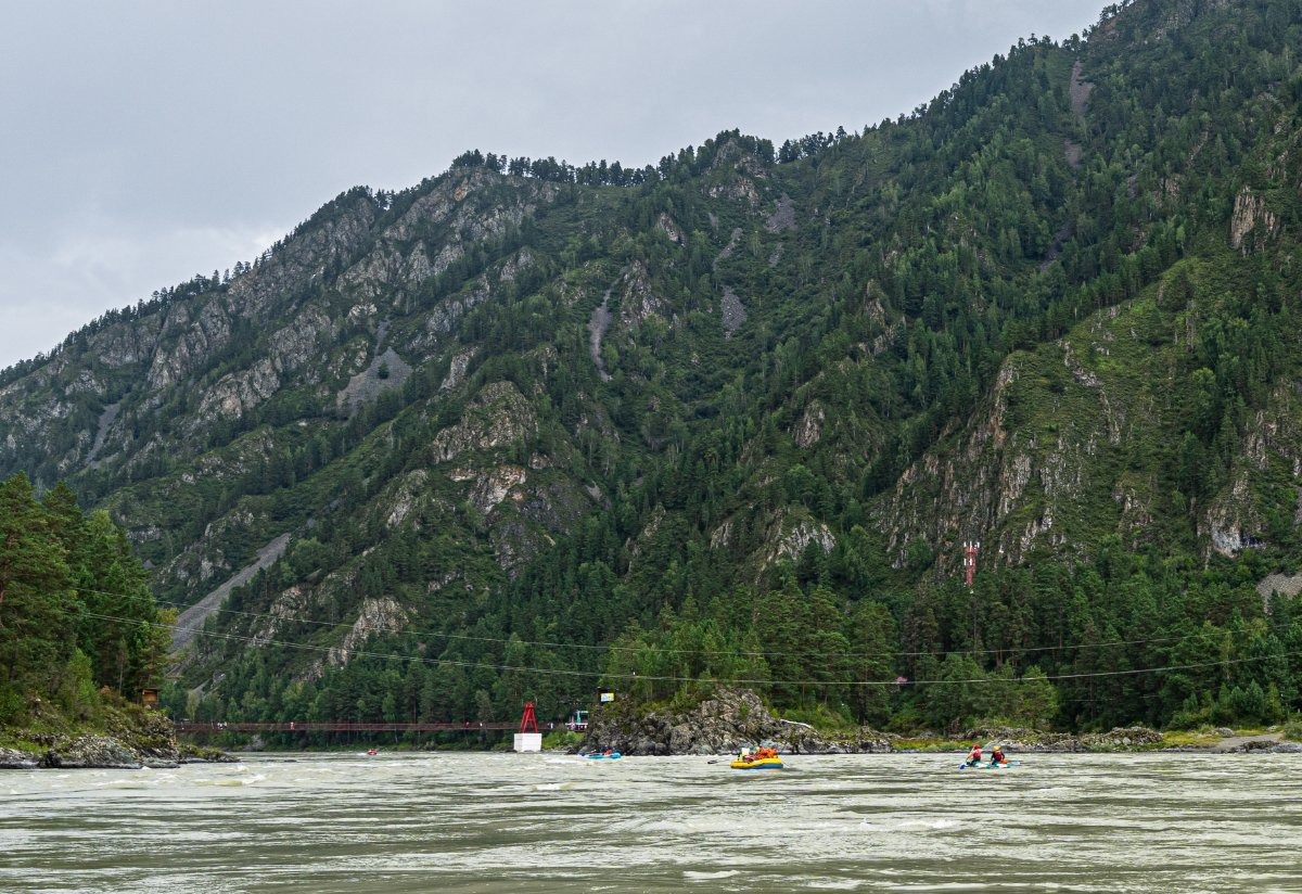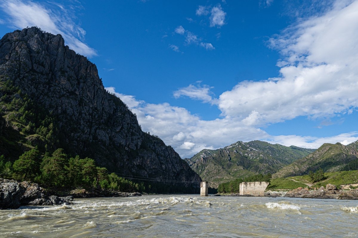 Вот и подошёл к концу наш более чем двухнедельный сплав по великой алтайской реке Катунь. До финиша будет ещё пара неплохих водных аттракционов, но они, конечно же, не столь удивительны, как те, что были пройдены в верховьях и средней части реки. Скорость течения всё равно остаётся довольно резвой, но в целом река успокаивается. И красоты местные никто не отменял: