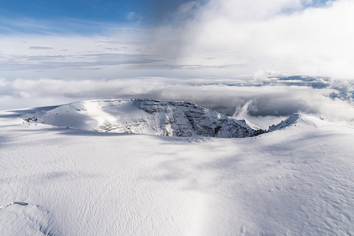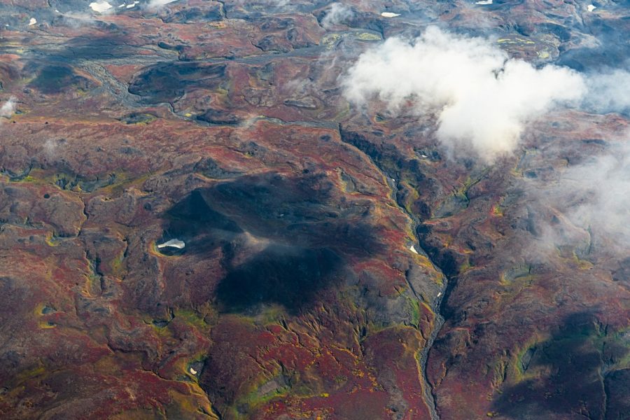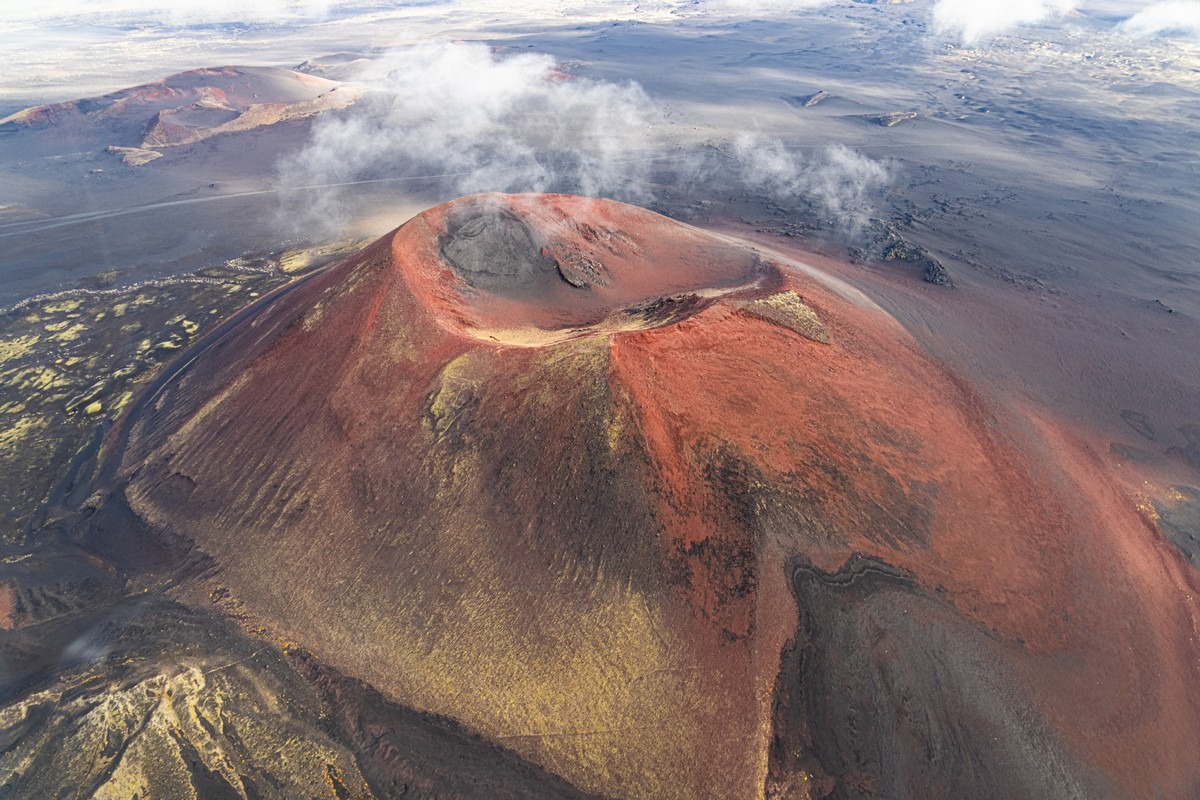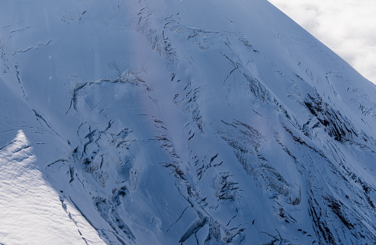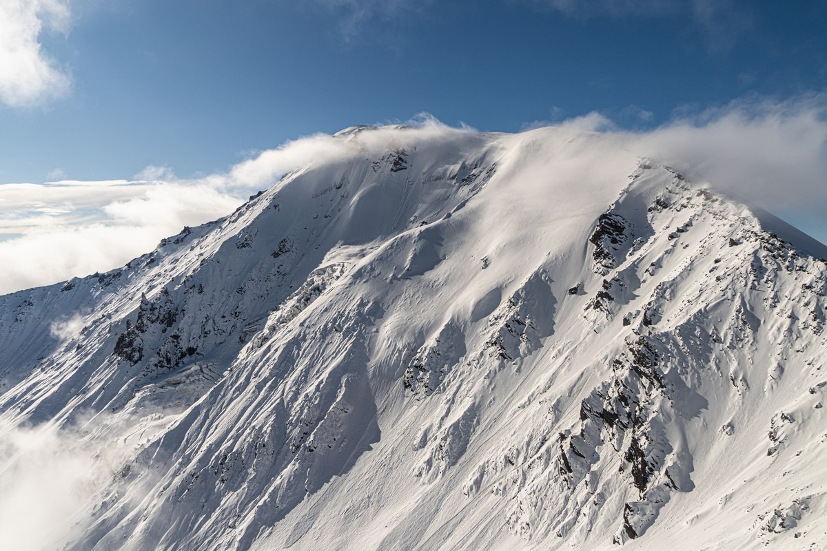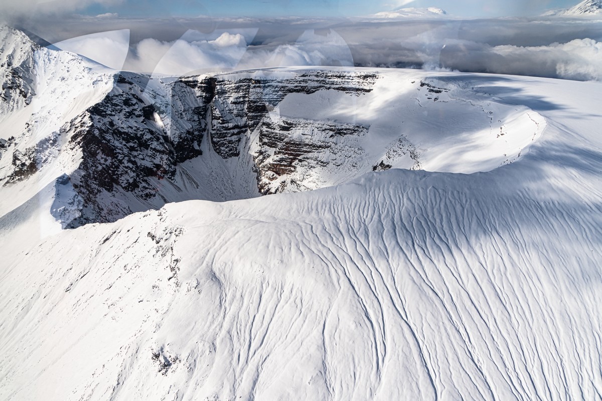 Погоде деваться некуда — когда-то она будет улучшаться. Каждый новый день нашего путешествия развивался именно по такому сценарию. Но сейчас нам показывают однозначно не самые созерцательные картинки. Пролетаем другим близлежащим вулканом Ключевской группы, Толбачиком.
