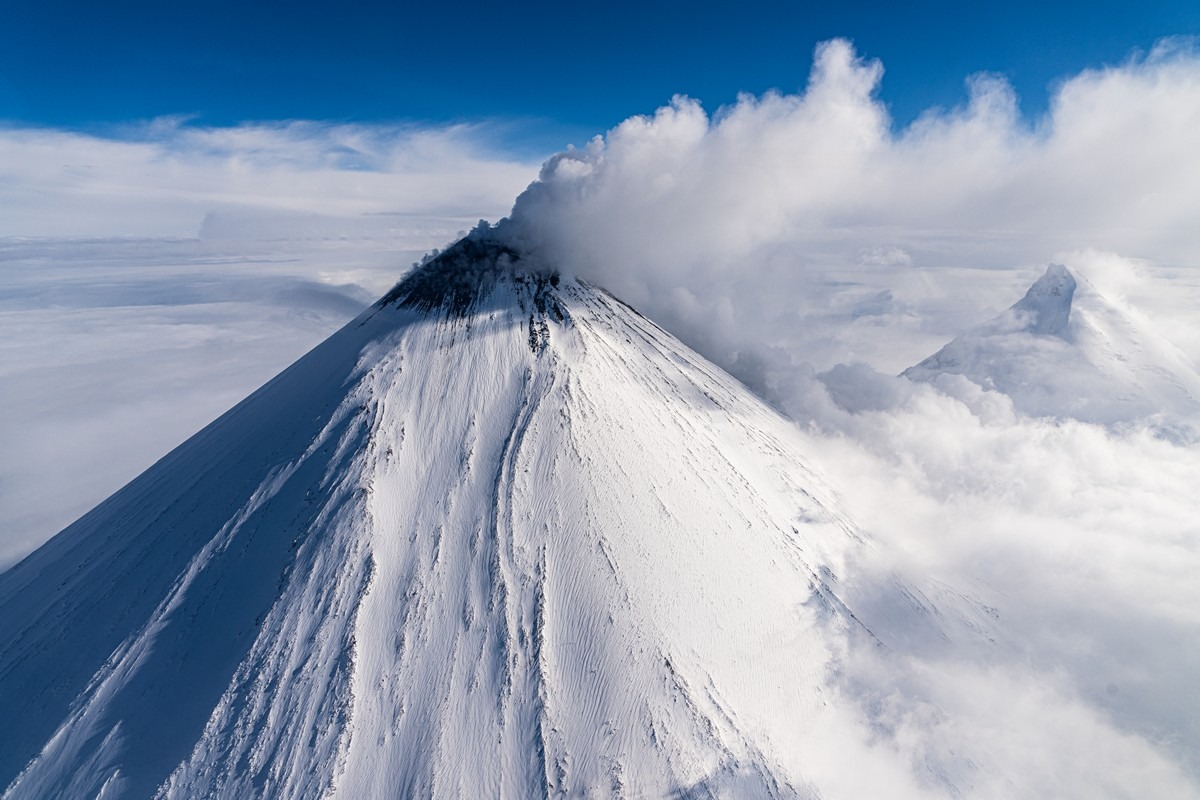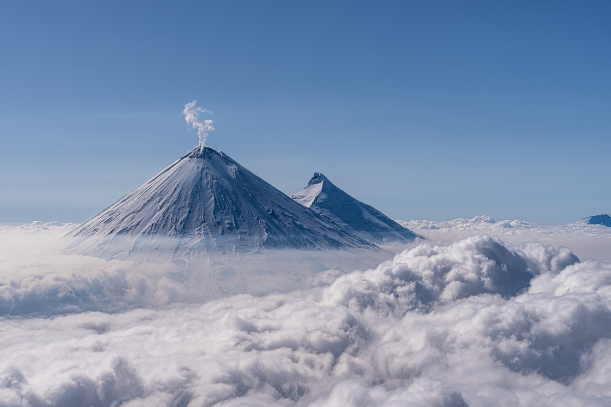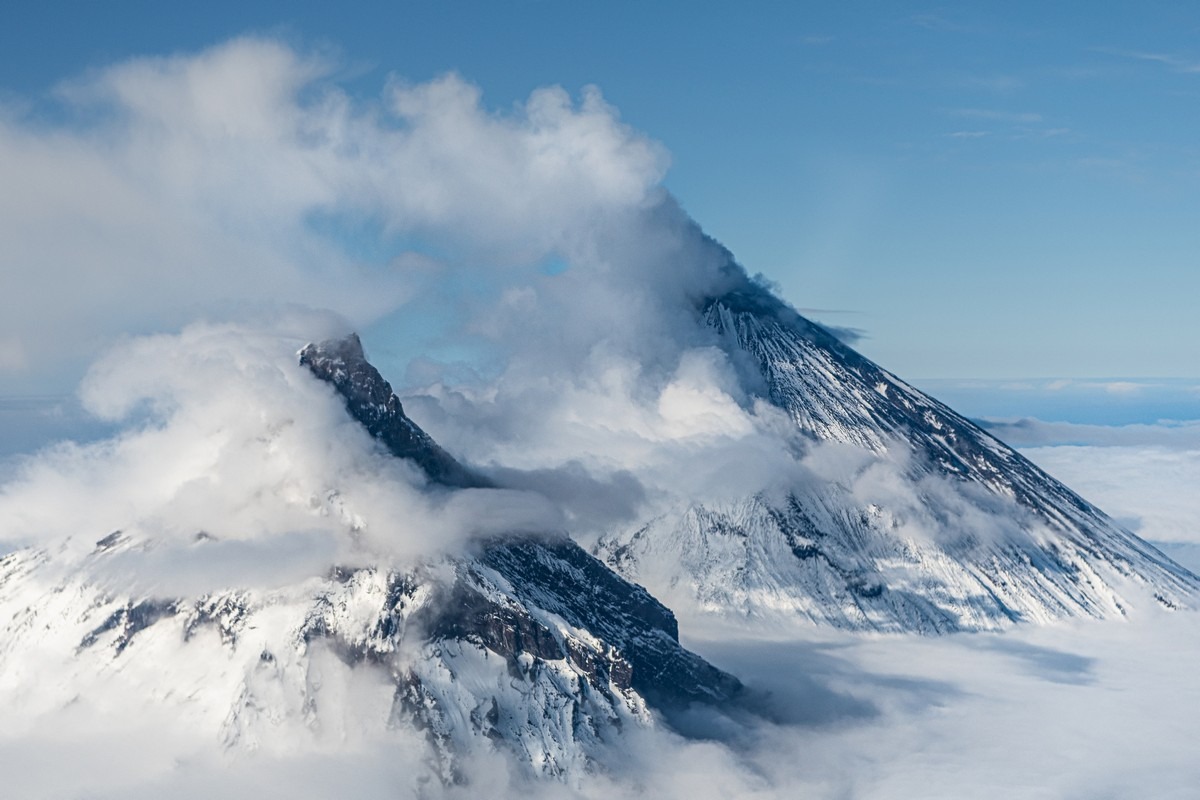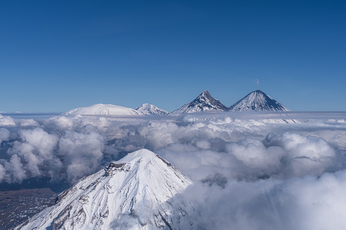 Примерно в 350 километрах на север от Петропавловска-Камчатского находится одно из самых великолепных в мире вулканических зрелищ — Ключевская группа вулканов. Это крупнейшая в России «агломерация», объединяющая 14 вулканов (в том числе 4 действующих) и несколько сотен конусов, куполов и прочих пупырей. Но ядро группы, конечно — Ключевская сопка, чуть южнее — Камень и вулкан со странным названием Безымянный.