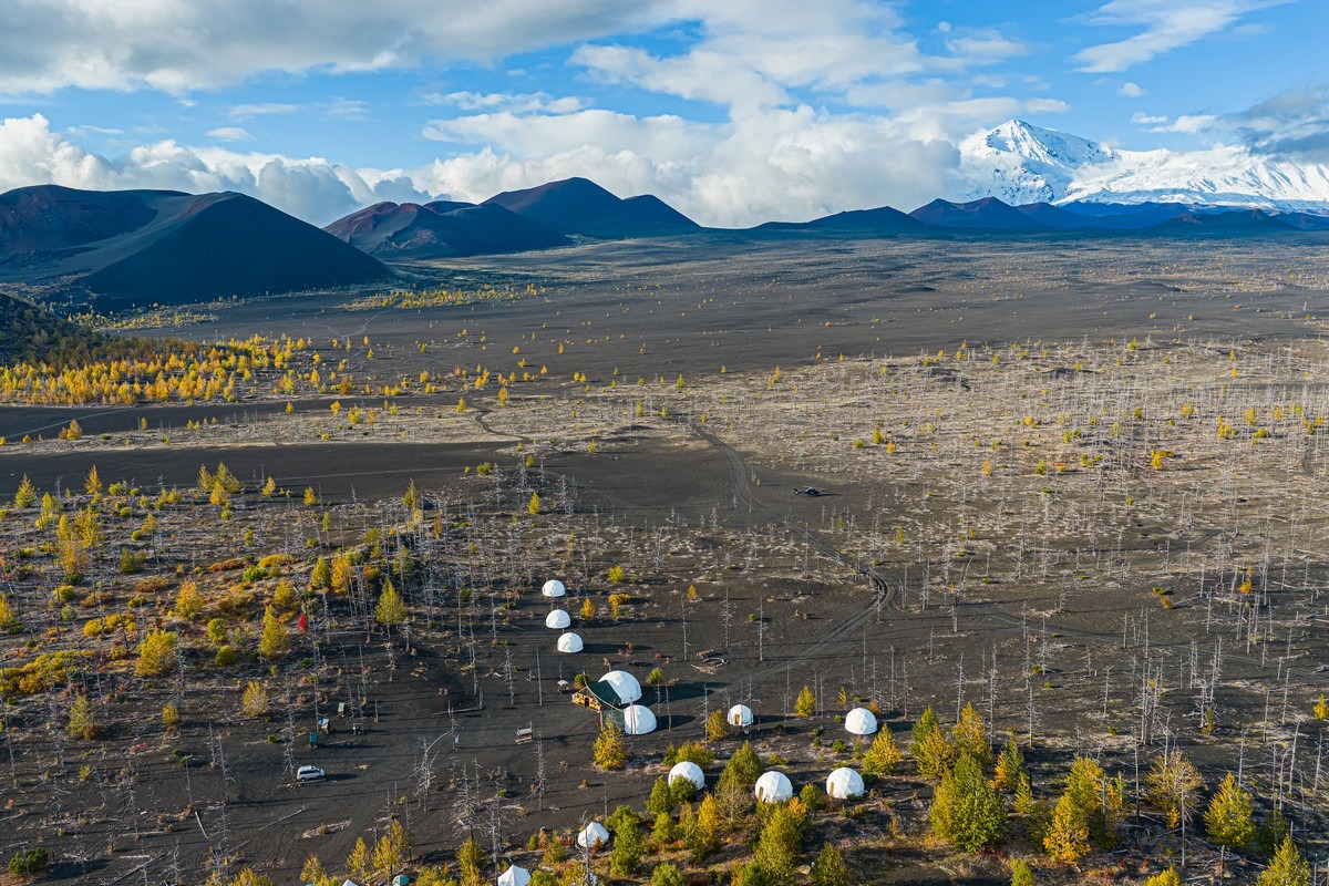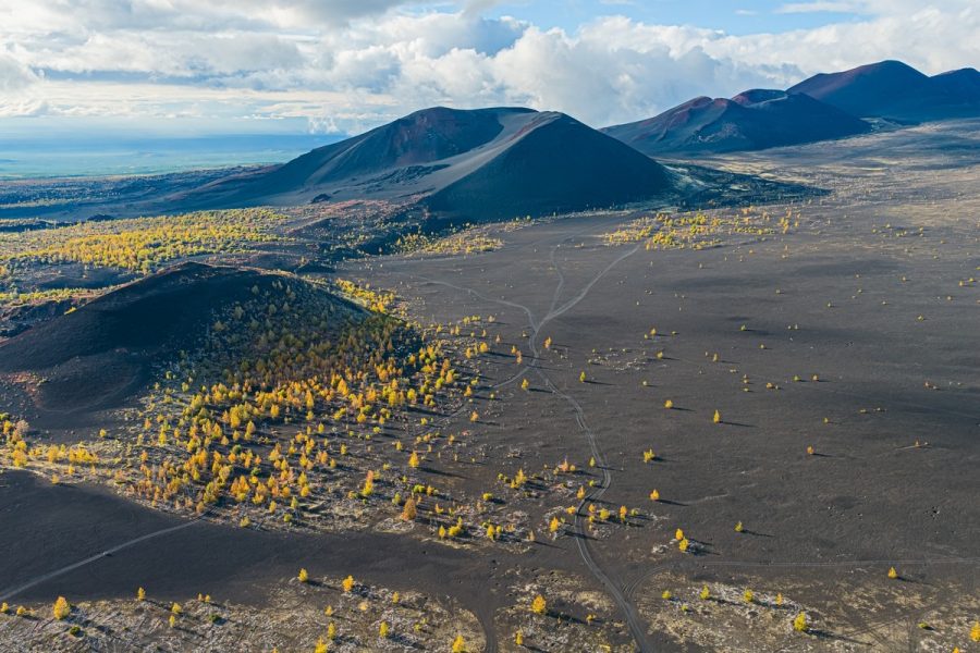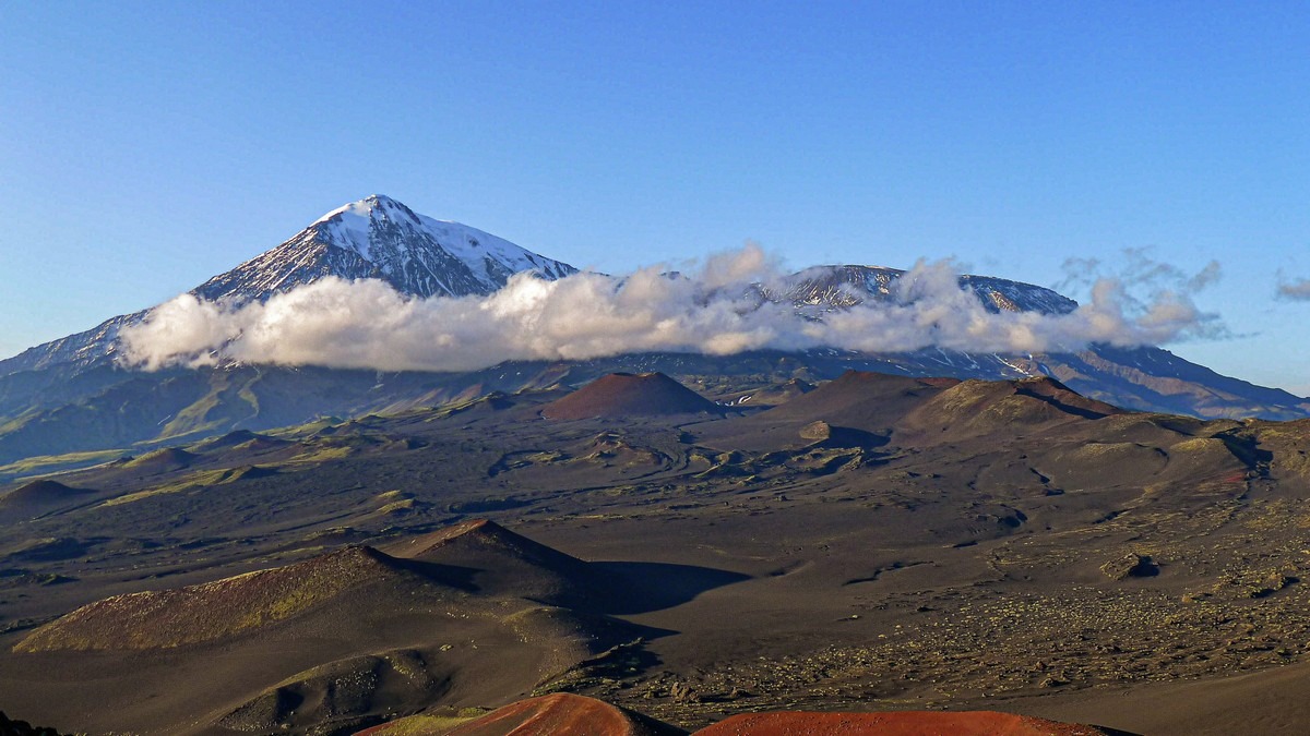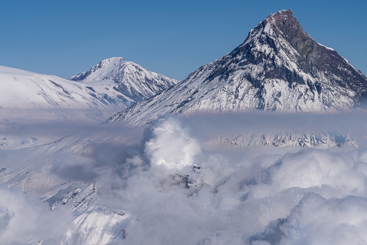 Примерно в 350 километрах на север от Петропавловска-Камчатского находится одно из самых великолепных в мире вулканических зрелищ — Ключевская группа вулканов. Это крупнейшая в России «агломерация», объединяющая 14 вулканов (в том числе 4 действующих) и несколько сотен конусов, куполов и прочих пупырей. Но ядро группы, конечно — Ключевская сопка, чуть южнее — Камень и вулкан со странным названием Безымянный.