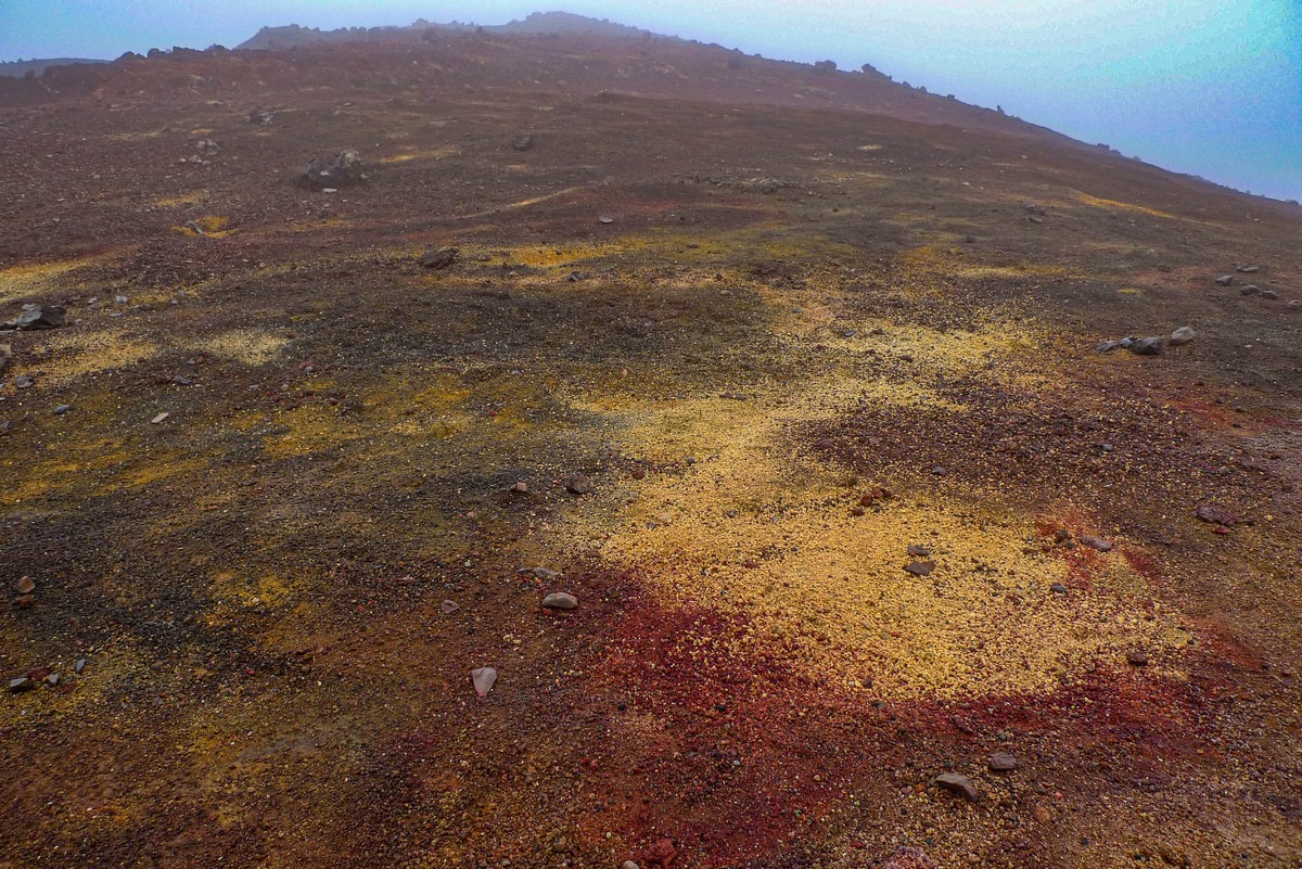 Здесь не только яркие краски — склоны кратеров местами были раскалены настолько, что если в некоторые трещины засунуть деревяшку, то она через некоторое время загоралась! И было это ещё лет 10-15 назад (через 40 лет после извержения). Фотка 2010 года: