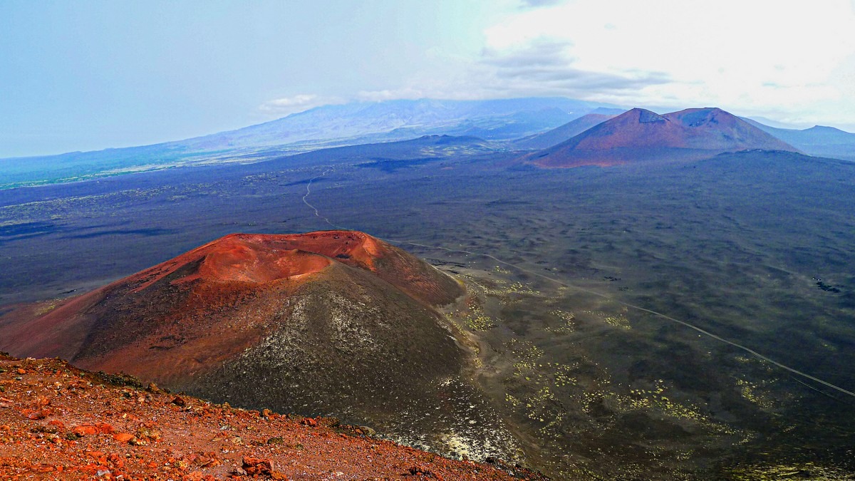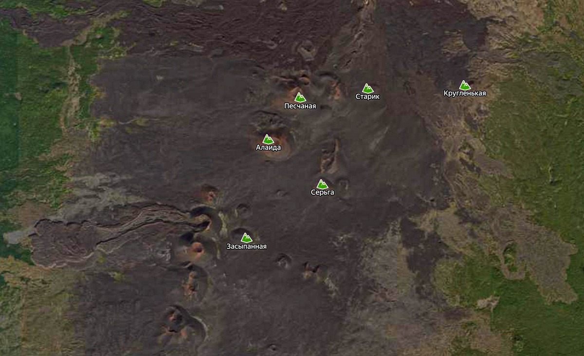 Картинки здесь в разные стороны — закачаешься. И всё это результат Большого трещинного Толбачинского извержения 1975-1976 годов. Это вот здесь на картах: