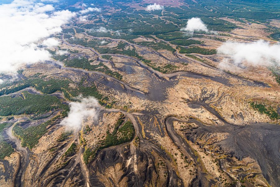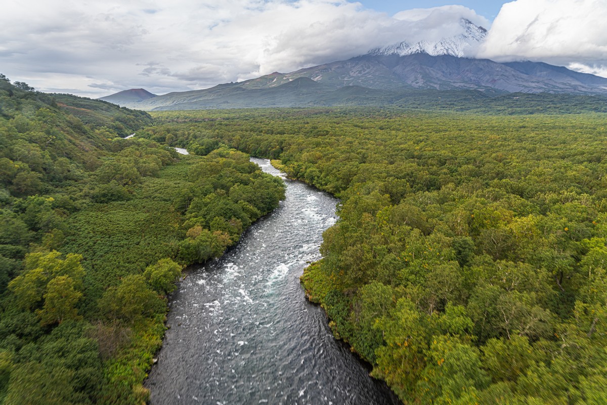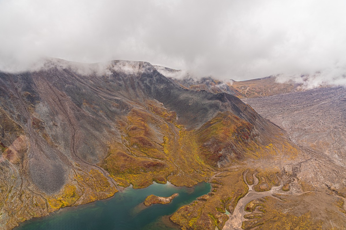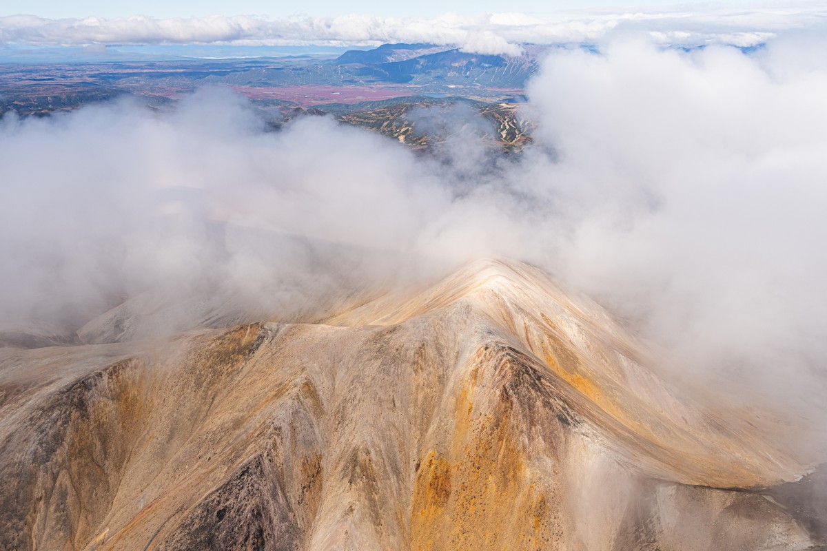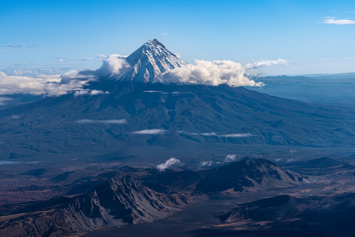 Теперь уже совсем прощаемся с севером и направляем наши винты на юг. Первым на этом маршруте нас встречает вулкан Кизимен. Очень интересное сооружение, но в этот раз был полностью закрыт облаками. Прямая противоположность нашему опыту в сезоне-2024. В общем, совсем мимо.