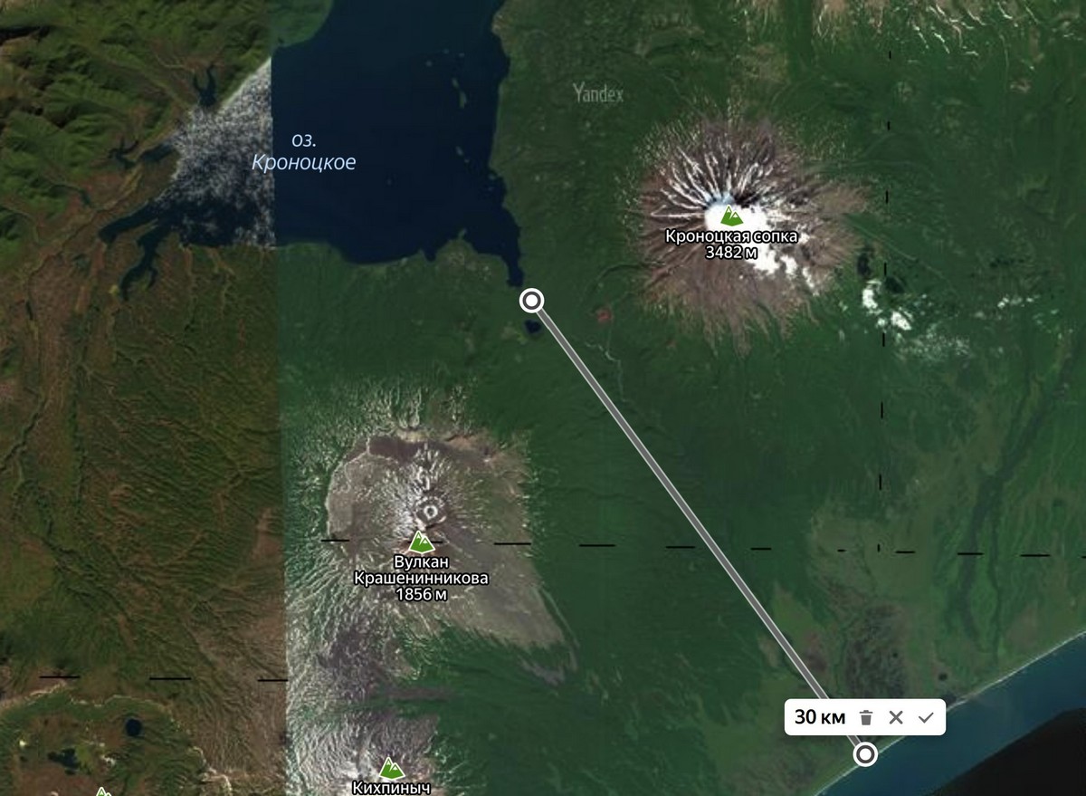 В этих местах в не такие далёкие старые-добрые времена разыгрался скандал по теме защиты заповедников и прочей окружающей среды. А именно. У подножья Кроноцкого вулкана плещется Кроноцкое озеро, из которого вытекает Кроноцкая река и где-то через 30+ км впадает в Кроноцкий океан. Ой, пардон, в Тихий океан :)