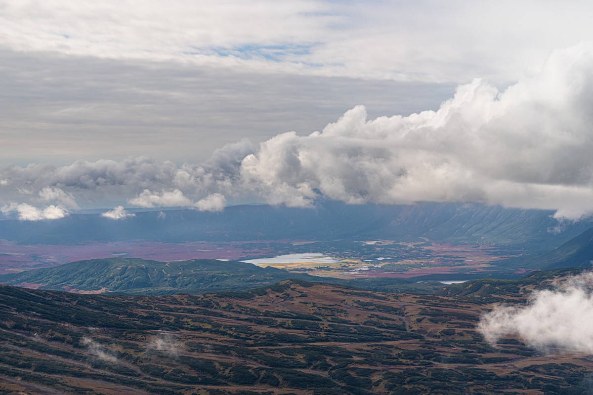 Наше осеннее путешествие на Камчатку перемещается на юг. К сожалению, в северной части полуострова погода нечасто улыбалась нам солнцем, чтобы порадовать взор окружающими созерцательностями. Но, тем не менее, нам удалось как никак осмотреть Ключевскую группу вулканов, побывать на Узоне и в Долине гейзеров (с пешим заходом в близлежащую Долину смерти), сделать кольцо по кальдере Малого Семячика, даже дотянуться до главного северного вулкана Шивелуч.