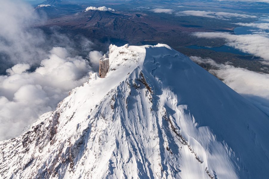 Рассказывал в прошлом году, что такая форма описывается уравнением Лапласа. То есть, вулкан ещё и математически выверенный! Но в этот раз нам его показали слегка прикрытым облаками, так что фотки по ссылке выше — более правильные.