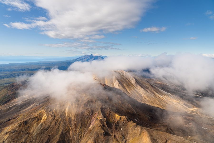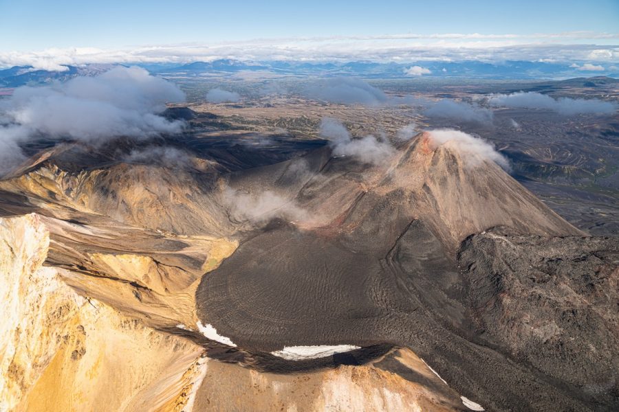 Но сначала немного лингвистики. Есть пара версий происхождения названия — от ительменских слов кыхкыг (гром) или ких (река) и пангыч/панич (огонь) — то есть «огнедышащая гора» или «огненная река». Если это верно, то означает, что окрестные океанские побережья были заселены ранее последних извержений — а это было примерно 600-1000 лет тому назад.