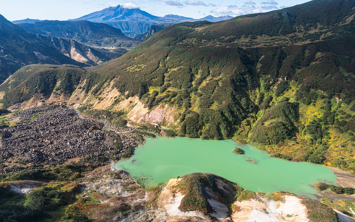 Но пора сделать остановку — не столько отдохнуть самим, сколько заправить вертолёт. Делать мы это будем на кордоне в Долине гейзеров. Уж сколько про неё рассказано и показано, а впечатления не заканчиваются. Подпорное озеро — результат ещё одного оползня, примерно в 4км выше по реке Гейзерной: