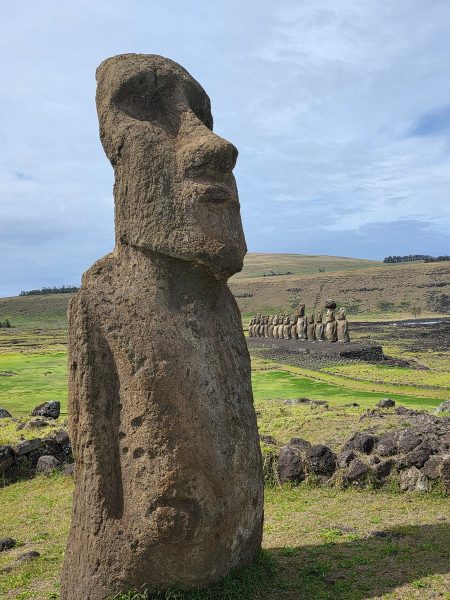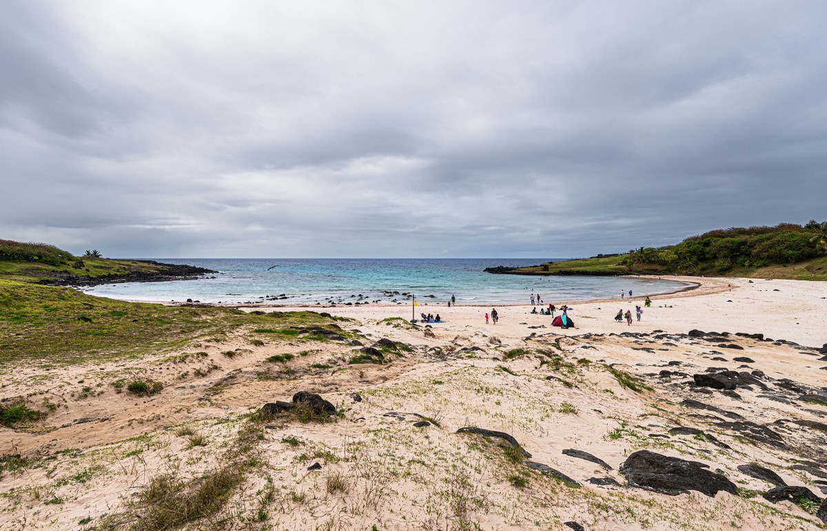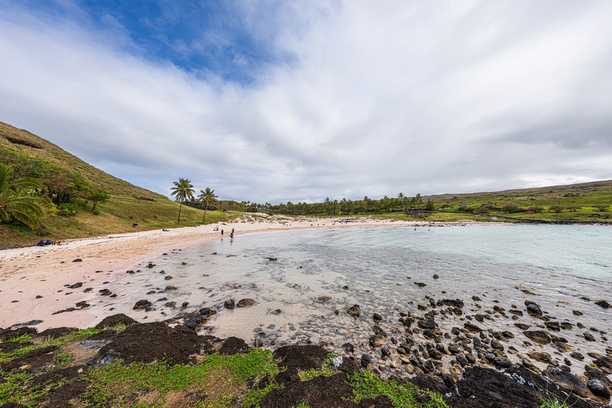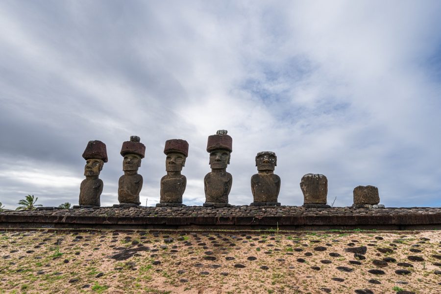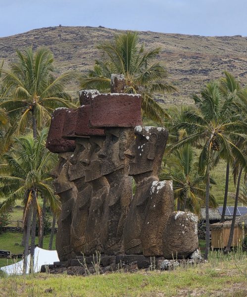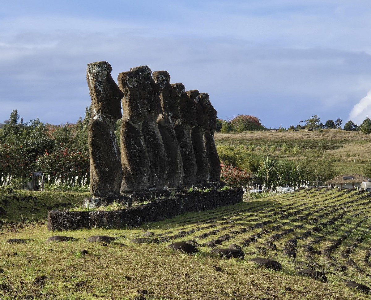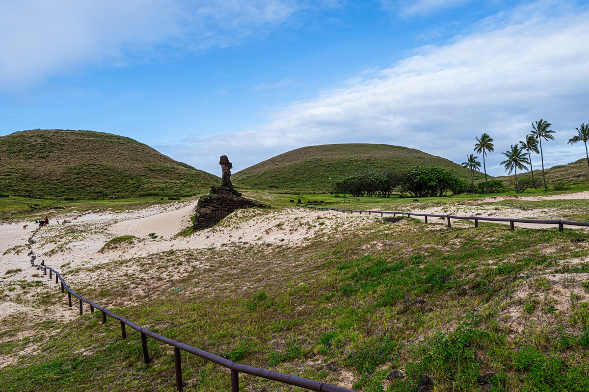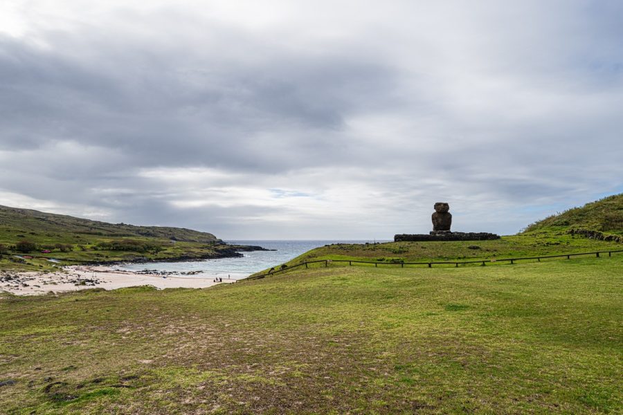 Зато прямо рядом с пляжем — сразу несколько статуй-моаи: