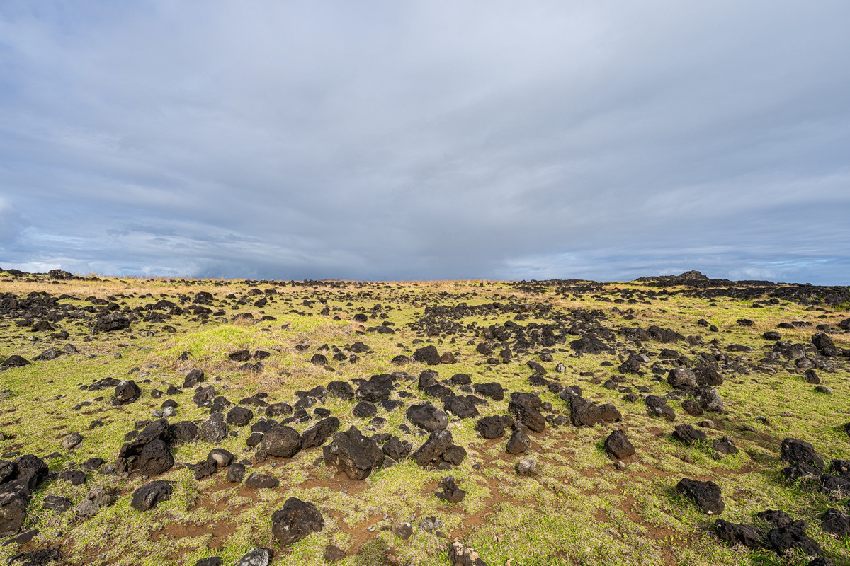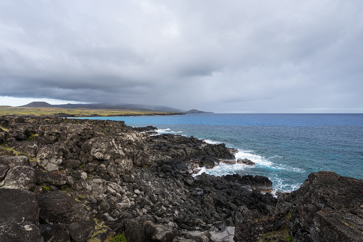 Если верить интернетам, то основа острова Рапа-Нуи начала образовываться примерно 2,5 миллиона лет тому назад, но возраст вершин современных вулканов составляет несколько сот тысяч лет, а самое последнее активное извержение произошло всего-то около 2 тыс лет тому назад (то есть, ещё во времена Римской империи). То есть, этот остров вполне себе юный — что и доказывают маложизненные пейзажи его характерно вулканического побережья: