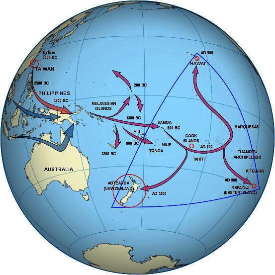 Человеко-хомосапиенс отправился на заселение современной Океании примерно 3-4 тысячи лет назад. Сначала, похоже, ему удавалось идти по суше (уровень океана был ниже). Потом пришлось переплывать небольшие водные препятствия. Затем это пронырливое существо научилось строить лодки и уходить на них далеко в море-океаны. Были освоены огромные пространства, но всё равно было мало. И постепенно древние мореплаватели Океании уходили всё дальше и дальше в неизведанные пространства. Кому повезло, находили необжитые атоллы, архипелаги и одиноко расположенные острова. Их заселяли, обживали и оттуда двигались дальше — на восток, север или на юг.