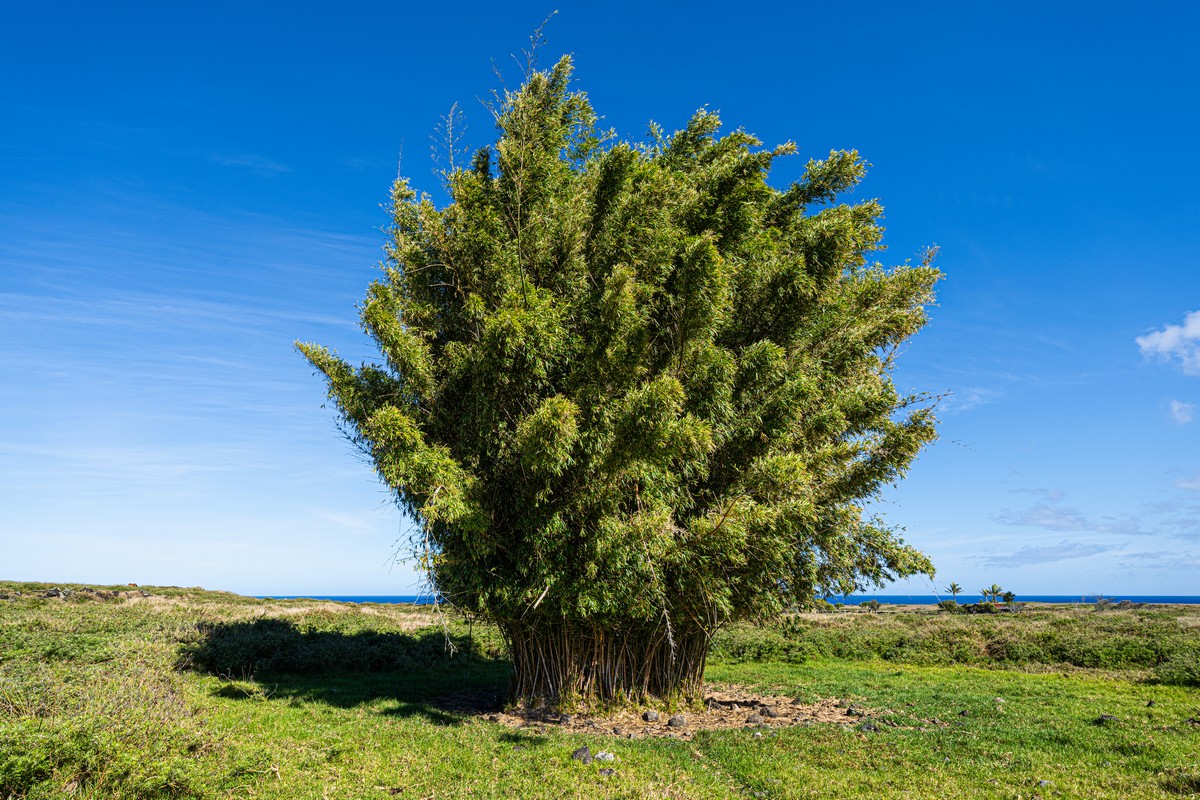 Что произошло? Самая популярная версия — антропогенная. Что они сами себе «злобные буратины» и погубили лесные ресурсы в своих личных корыстных целях. Однако другие источники добавляют, что возможно «помогло» какое-то изменение климата, да плюс семена деревьев и молодые побеги пришлись по вкусу завезённым переселенцами крысам. И от былых лесных массивов остались жалкие остатки. И сразу фотка для иллюстрации: посреди лысых пространств внезапно куст бамбука: