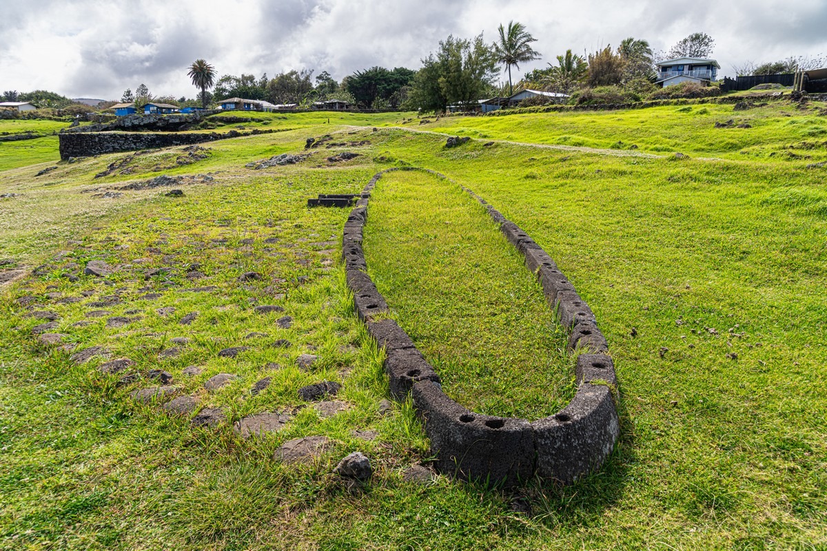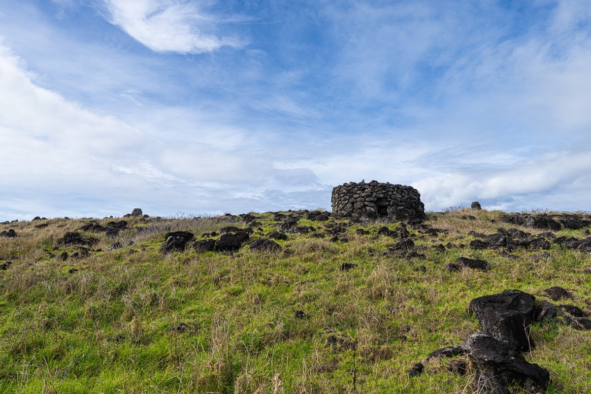 И в качестве десерта: после того, как у местных полинезийцев закончилось дерево, они начали строить дома из тростника. А чтобы ветром не сдувало под дом ставили вот такой фундамент с дырочками в камне, в которые втыкались «рёбра прочности» из кустарника, а остальное оплеталось тростником.