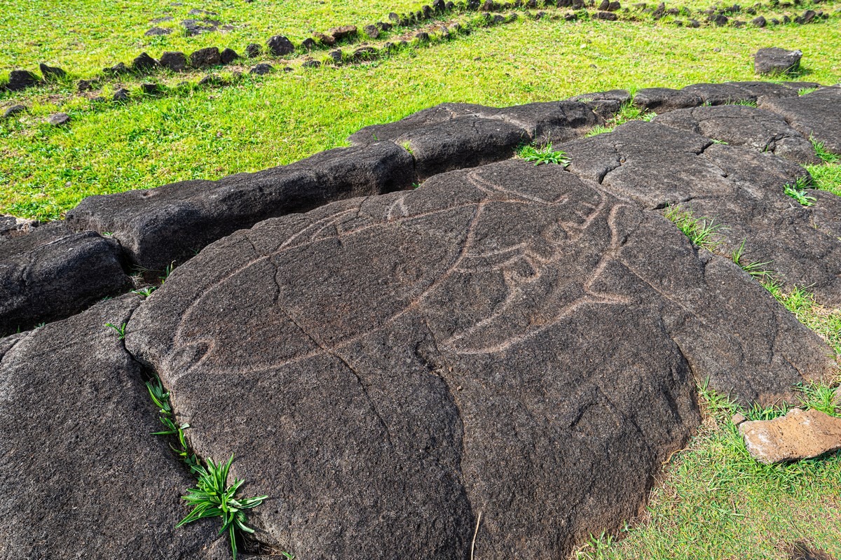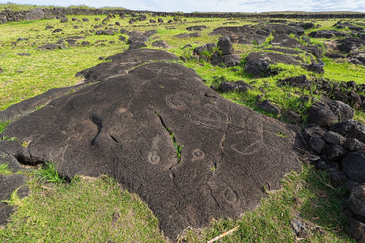 Если же говорить о местных петроглифах, то чтобы сразу закрыть тему — они на острове встречаются в довольно больших количествах и, наверное, далеко не все ещё обнаружены, поскольку заросли травой и кустами, занесены грунтом. К каким-то достаточно муторно добираться (трёх дней для туризма не хватит). Но местами они не так далеко от главных туристических маршрутов. Например: