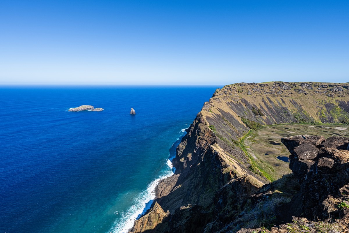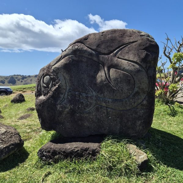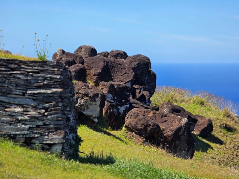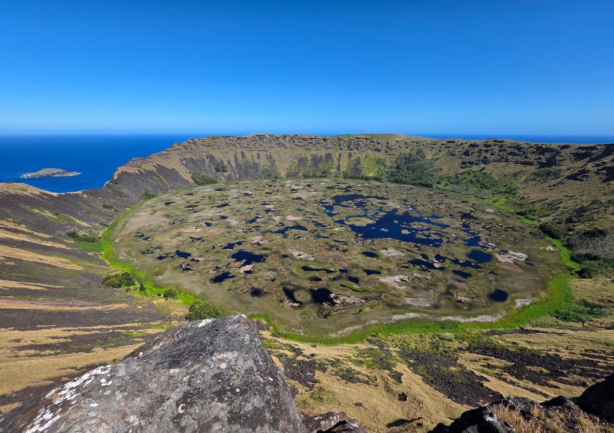 Ещё одна прогулка поинтересней — к кратеру вулкана Рано-Кау на юго-западе острова и к церемониальной деревне Оронго, где когда-то сотни лет назад проходили соревнования, посвящённые культу человека-птицы. Вид на кратер вулкана говорит сам за себя: лезть обязательно!