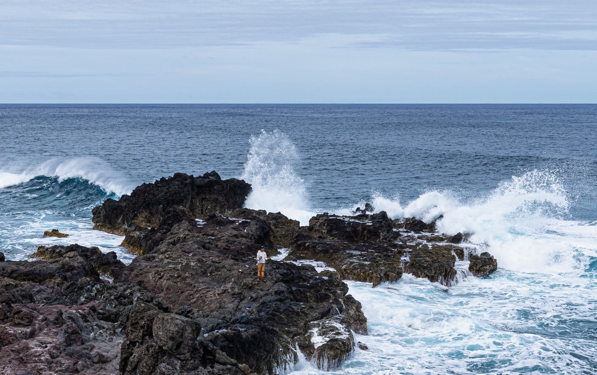 А вот и конец пешей прогулки, пляж «Ovahe». Искупаться? Но что-то пригляделись к состоянию местных скал… и расхотели. Какие-то они непрочные. Гид подтвердил, что обрушения скал здесь вполне обычное событие, что если мы хотим туда пойти, то он нас остановить не может, но сам не пойдёт :) У нас после такого объяснение желание тоже пропало..