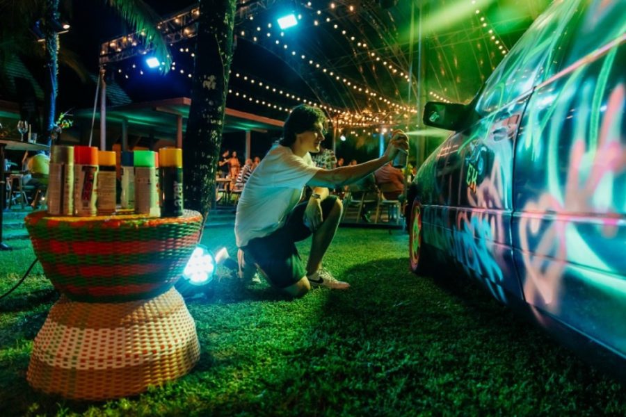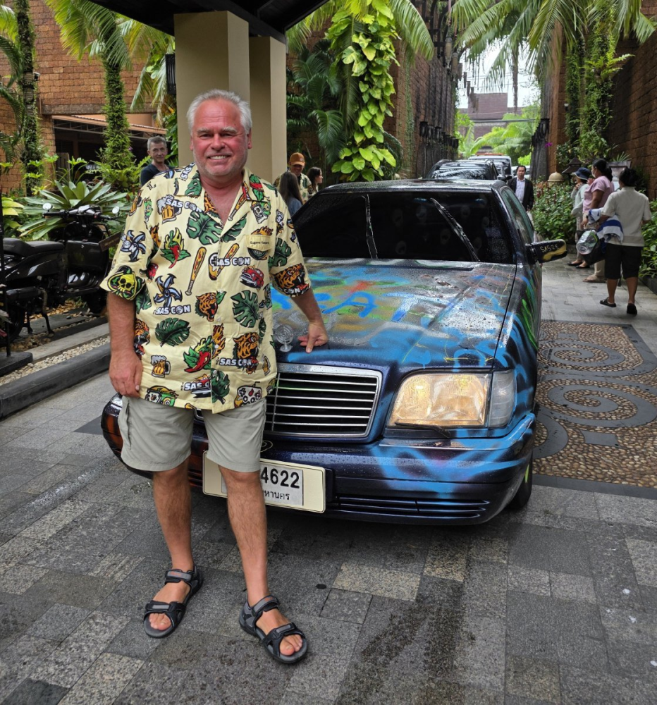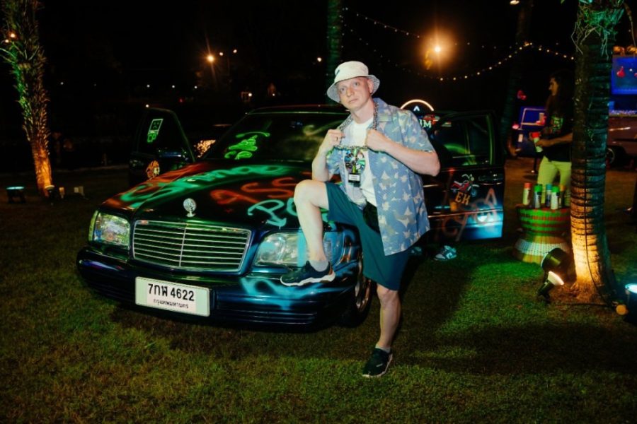 Да и как тут заскучаешь, если в какой-то момент на сцену выезжает старенький мерседес S-класса 1998 года, купленный здесь же в Таиланде, за рулём которого профессиональный автогонщик Ян Марденборо —