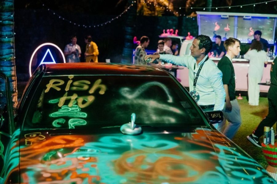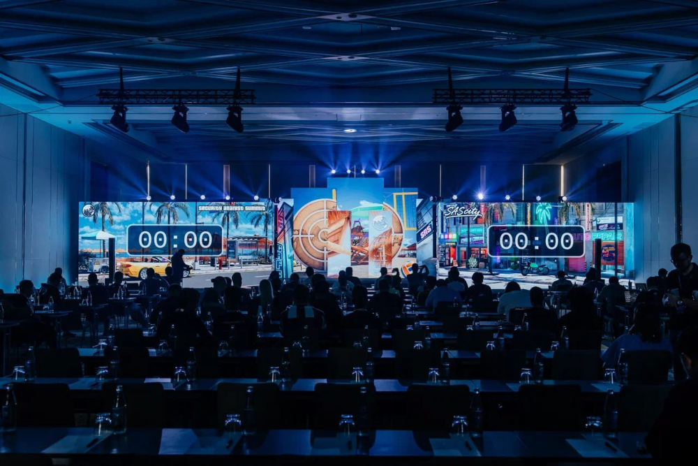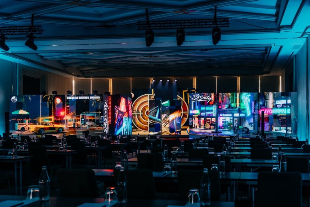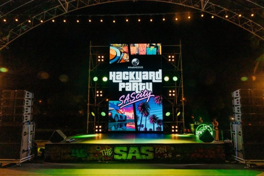 Каждый раз мы выбираем уникальный формат «декораций», обыгрываем что-то всем известное и понятное. Например, в прошлый раз мы обыгрывали космическую тему — и у нас были в гостях российский космонавт и американский астронавт (про SAS-2024 здесь), годом раньше обыгрывали антураж «Индианы Джонс» (SAS-2023) — и так далее. В этом году мы создали город SAS City, в стиле игры GTA: Vice City, которая, оказывается, вышла в свет ровно 23 года назад (29.10.2002).