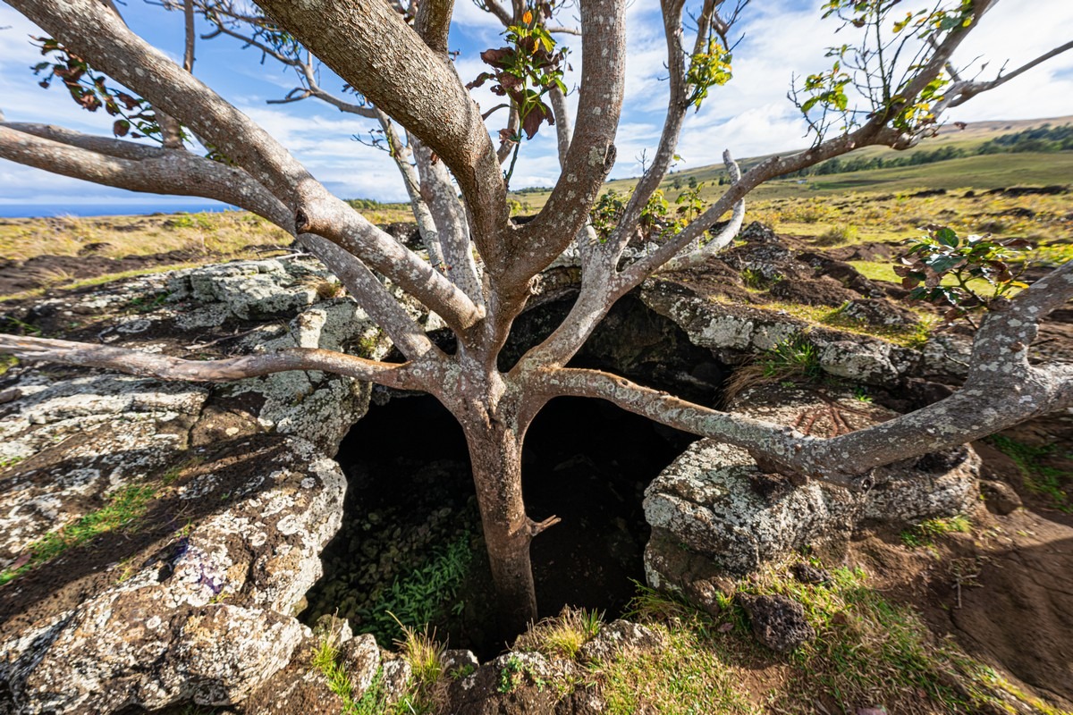 Это интереснейшее природное явление образуется таким вот образом. Вытекающая из извергающегося кратера лава застывает по краям, а внутри остаётся горячей и жидкой. В результате образуются лавовые трубы, которые сверху ещё и заливаются повторными лавовыми слоями. А текущая внутри труб лава, сохраняющая тепло и вязкое состояние, потом вытекает — и оставляет после себя совершенно разноформатные туннели: длиной от десятков метров до нескольких километров, диаметром от метра (еле пролезешь) до десятков метров — как в огромном зале. На Рапа-Нуи (остров Пасхи) туннели наполовину засыпаны и высота потолка от двух до, наверное, пяти метров, а шириной они от трёх до примерно 10 метров: