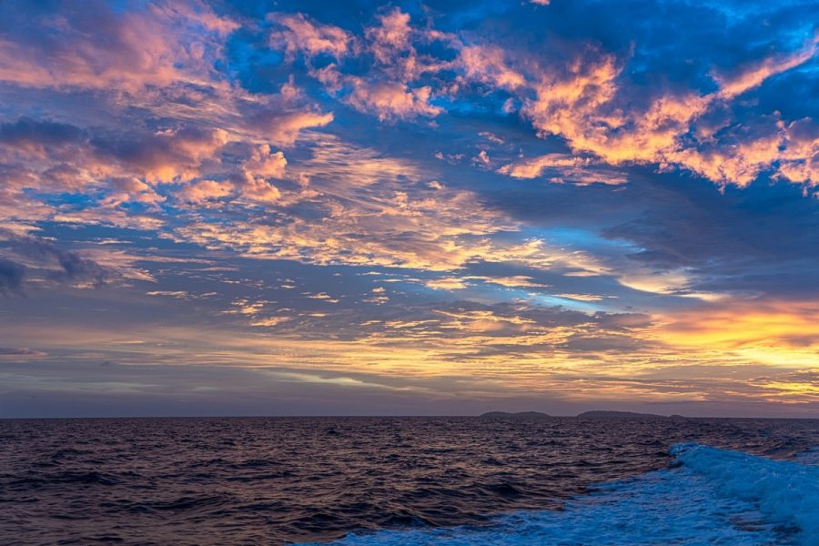 Нам выпало прибыть на остров на малогабаритной (но весьма комфортной) моторной яхте, которая не предназначена для таких прибрежных развлечений. На надувной моторке-зодиаке нас тоже отказались везти на берег, поскольку хорошей волной моторку здесь может просто кильнуть. В результате мы десантировались прямо в воду до того, как волны срываются в бурун. И, соответственно, надо было изловчиться, чтобы тебя не крутануло очередным валом. На обратном же пути нам пришлось эти буруны пробивать в обратном направлении до более спокойной волны. В целом, это не так сложно… однако, у меня в одной руке была герма (непромокаемый мешок) с моим любимым фотиком. Так что, было немного экстремально. Очевидно, фоток этих развлечений у меня нет.