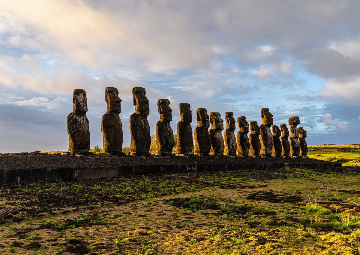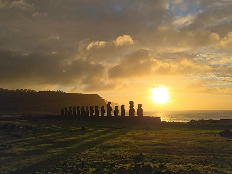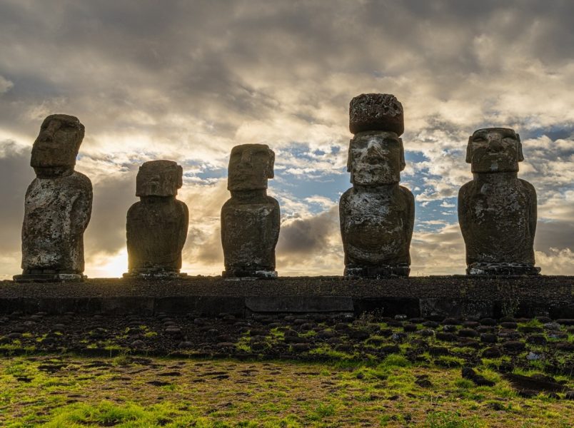 Статуи-моаи — на закате, днём, на рассвете.