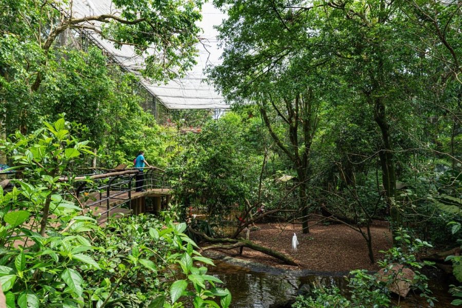 Что интересно – здесь во многих местах птички сидят не в клетках, а живут в огромных вольерах, куда через «дверные шлюзы» запускают туристов (шлюз = небольшое изолированное помещение и две двери, при этом открыта может быть только одна дверь, вторая блокируется). И обалдевающие от всего этого действа туристы гуляют по пространствам вместе с птичками: