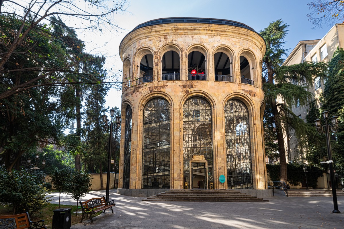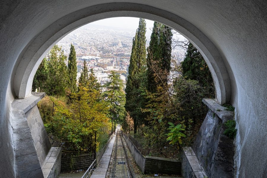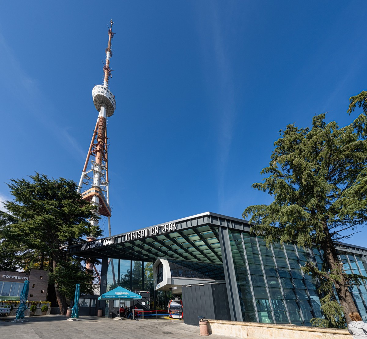 Ладно, спешим дальше — на канатную дорогу вверх на холм у горы Мтацминда. А здесь неплохо всё обустроено! Вот вход: