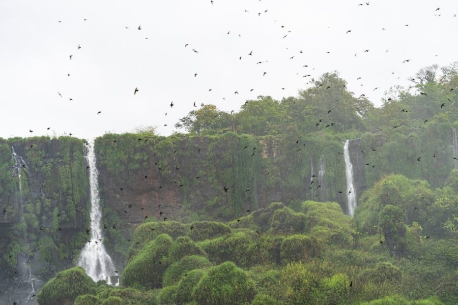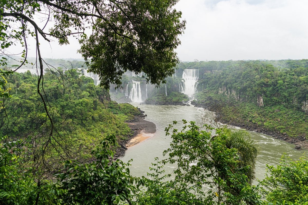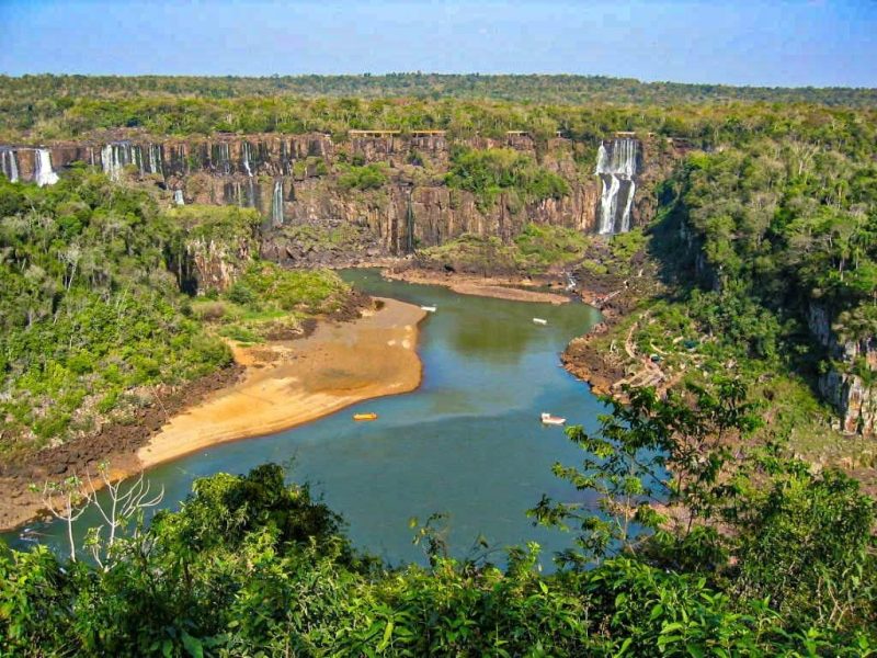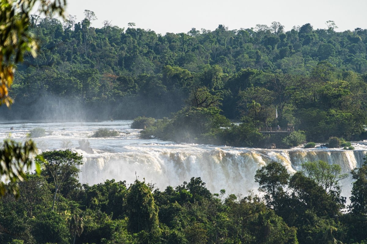 Второе. Смотреть водопады всё же стоит с двух сторон – с бразильской и с аргентинской, это всё можно сделать за один день. Вооон там, если присмотреться, справа по центру – площадка с аргентинским флагом: