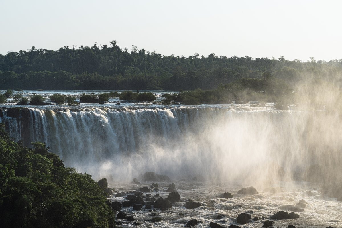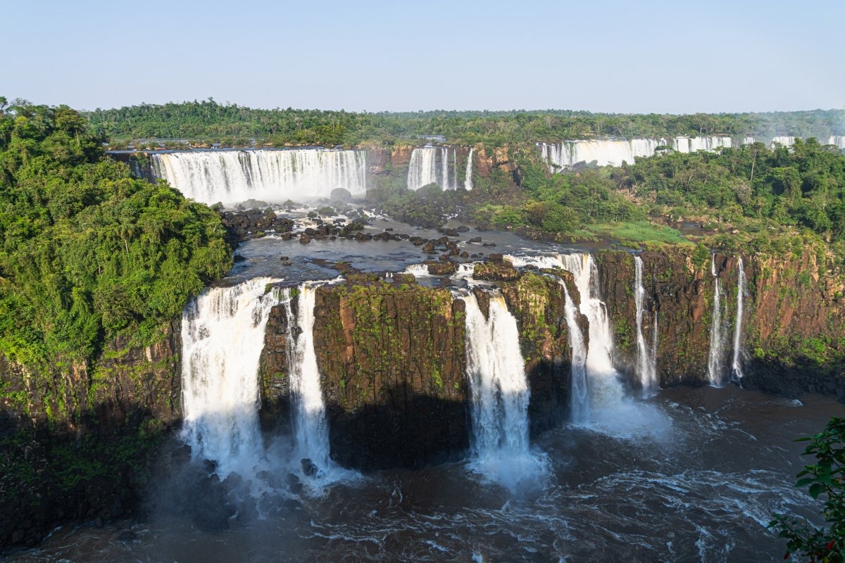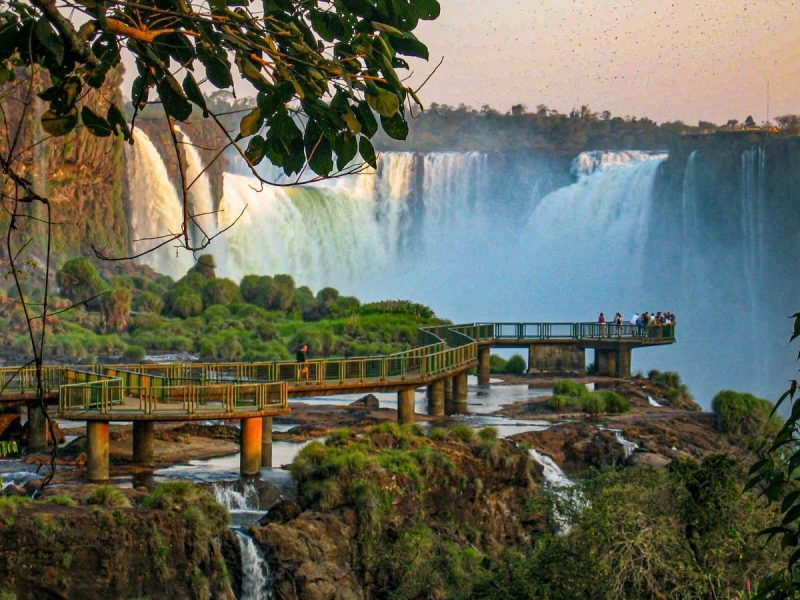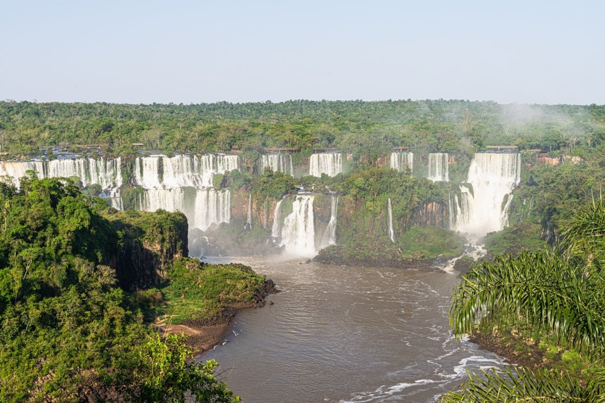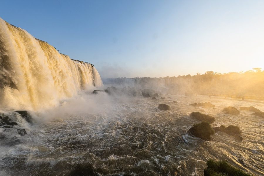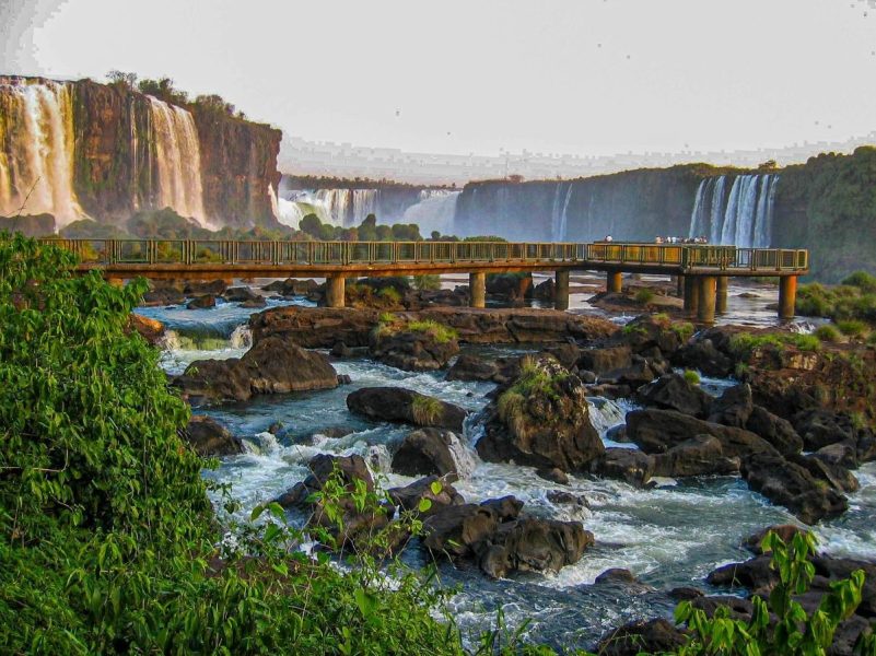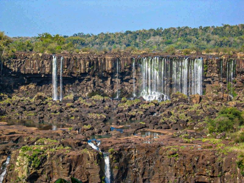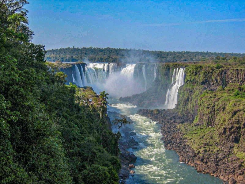 Продолжаю дорожные истории из бразильского Фоз-ду-Игуасу. Напомню, что это самое главное и правильное направление для туризма в этой стране наряду с Рио-де-Жанейро (в котором бывал неоднократно) и джунглями Амазонки (где планирую побывать). В предыдущих сериях мы гуляли по ГЭС Итайпу и по птичьему парку, и тем временем нам выдали солнечную погоду! Так что пришло время ещё раз вдумчиво полюбоваться водопадами, тем более что их расцветка засверкала совсем иными красками: