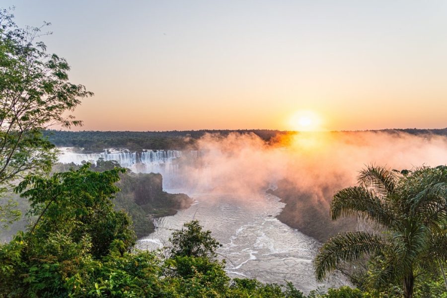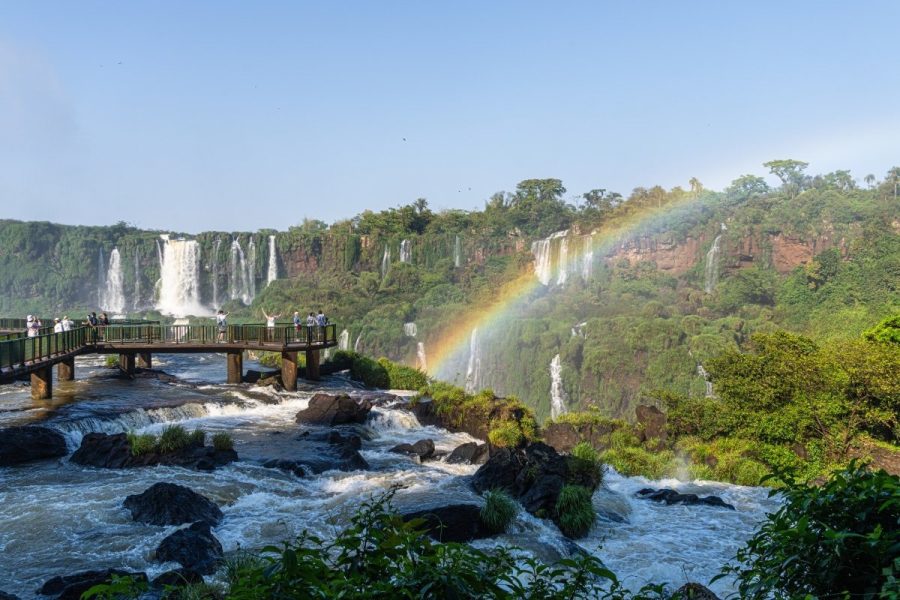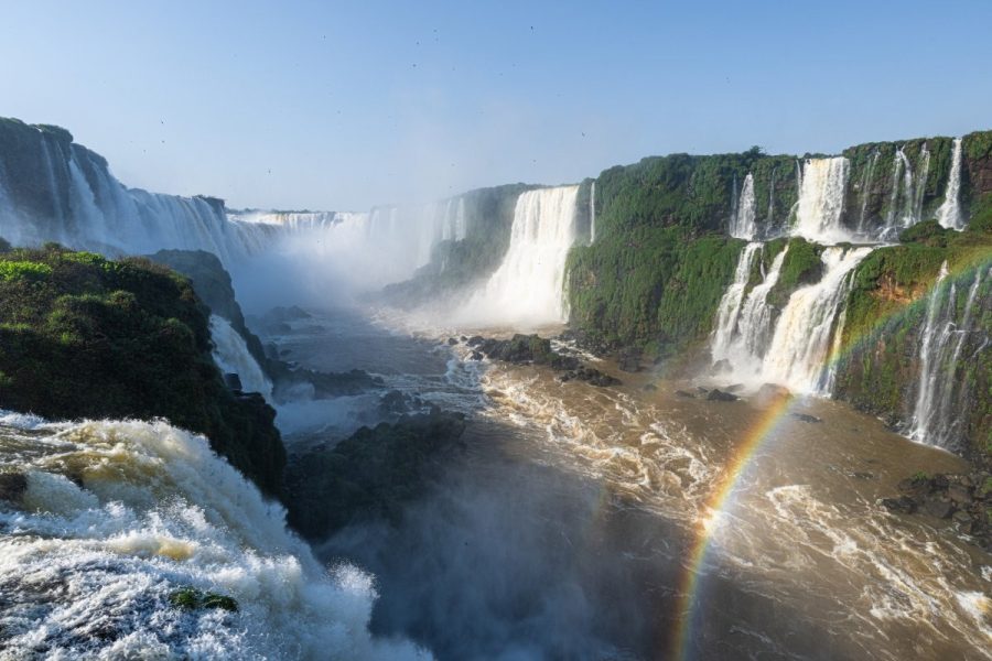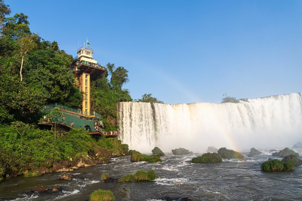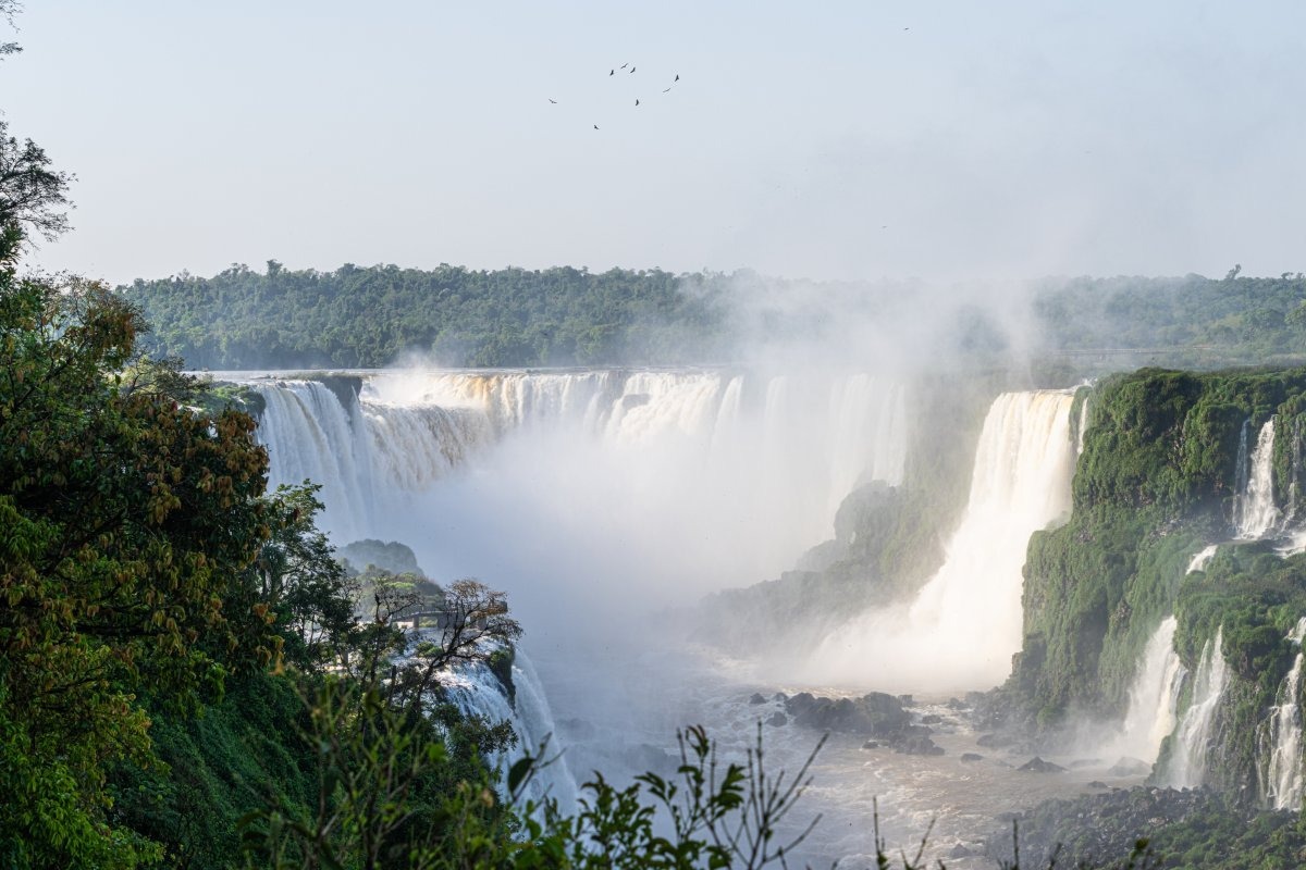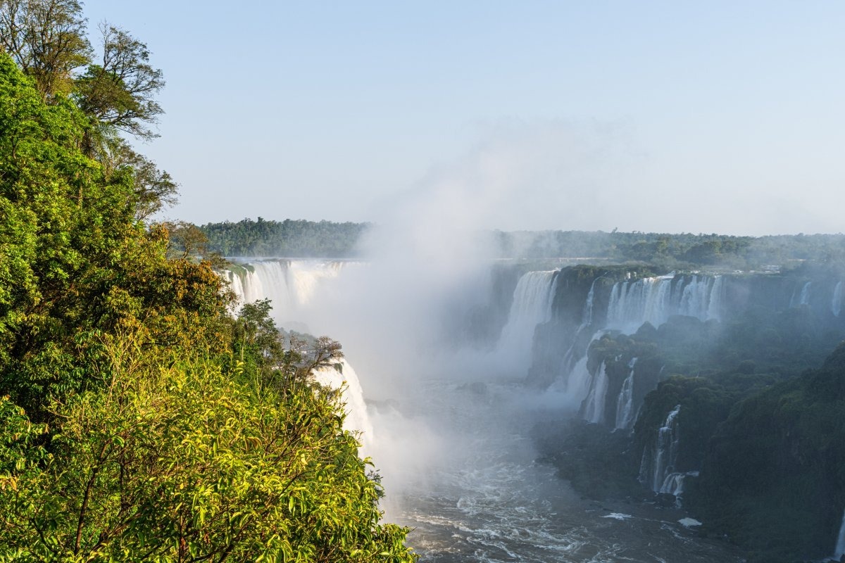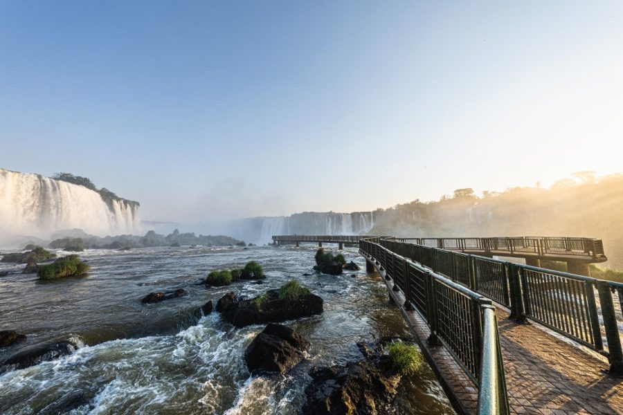 Продолжаю дорожные истории из бразильского Фоз-ду-Игуасу. Напомню, что это самое главное и правильное направление для туризма в этой стране наряду с Рио-де-Жанейро (в котором бывал неоднократно) и джунглями Амазонки (где планирую побывать). В предыдущих сериях мы гуляли по ГЭС Итайпу и по птичьему парку, и тем временем нам выдали солнечную погоду! Так что пришло время ещё раз вдумчиво полюбоваться водопадами, тем более что их расцветка засверкала совсем иными красками: