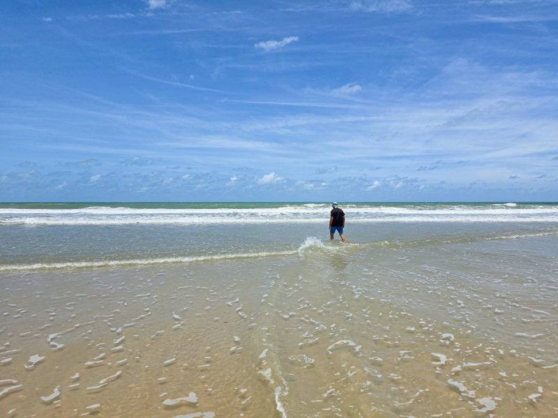 Так что из пляжных развлечений тут главное – гуляние по этому самому пляжу. Куда пойдём? Ну, сначала направо, на юг. Там выглядит поинтересней, поскольку налево и на север – какой-то полный голяк, просто пляж, ничего не просматривается. Так что смотрим на отель – и топаем ногами!