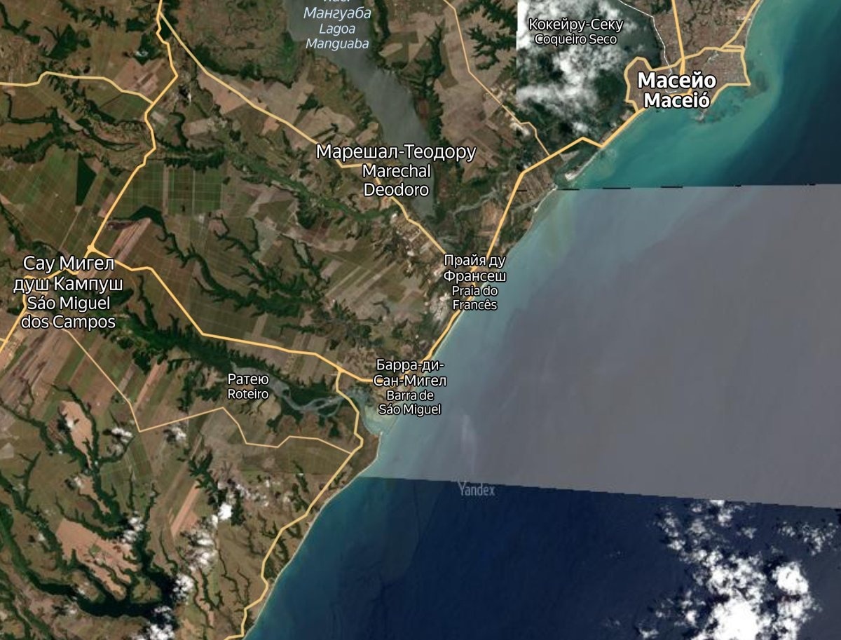Яндокарты же про глубину океанов [пока] не умеют, и лепят всё по-честному: да, вдоль берега вода явно не прозрачная…