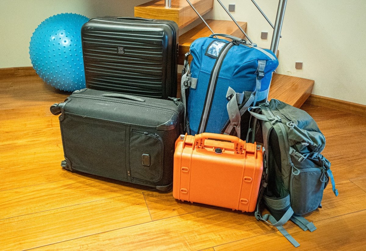 ЗЫ: по чемоданной теме вот что ещё вспомнилось. Однажды в поездку собрал аж вот такую кучу (синий шар не считается). Ближний чемодан и рюкзак полетели на Мальдивы, задний чемодан — в Читу, а баул с оранжевым чемоданчиком — в Магадан. Вот такое тоже случается :) — это была поездка Мальдивы — Магадан — Якутия — Москва января 2021 года.