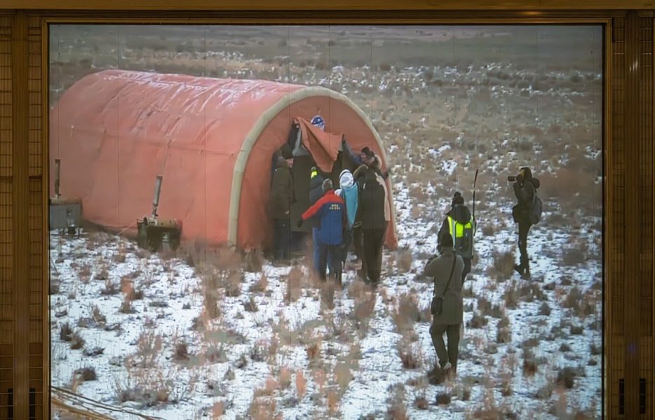 А вот Алексею Зубрицкому (бортинженер) не так повезло — его понесли в отдельно стоящую палатку, за ним потянулись медики. У него это первый полёт, видимо что-то пошло не так.