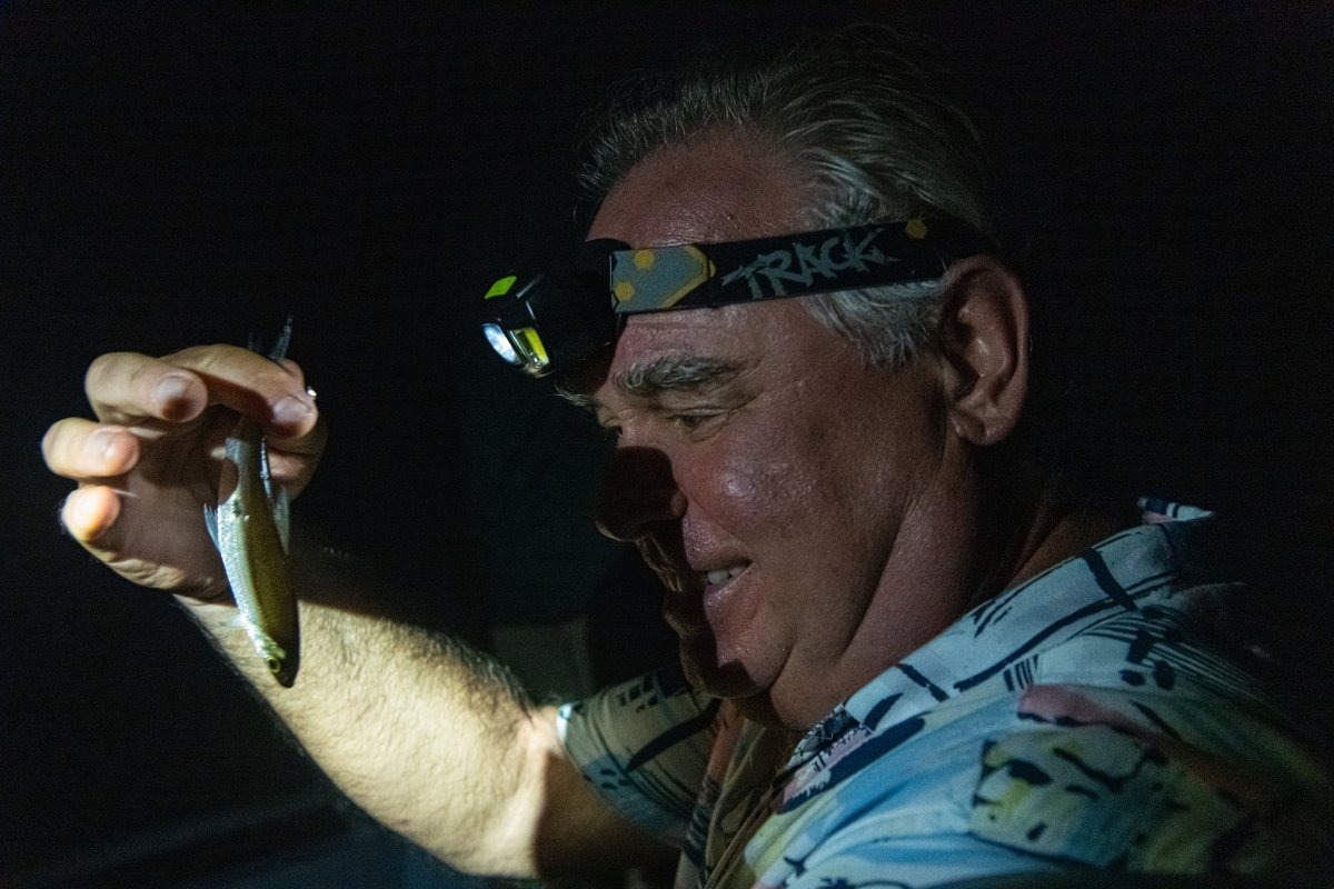 А вот эту рыбку кто-то напугал, она выпрыгнула из воды, ударила меня в бок – и застряла в нашей лодке. Не волнуйтесь, рыбка была сфотографирована и отпущена обратно.