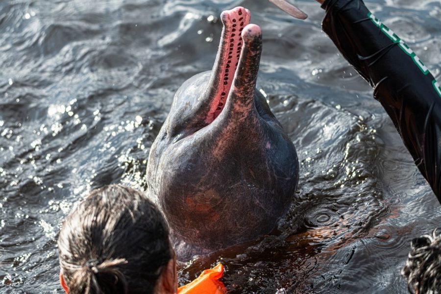 (ii) Покормлены: розовые пресноводные дельфины — эндемики Амазонии, гигантская рыба пираруку (она же арапайма), а также карликовые обезьянки с неизвестным мне названием (подсказывают: беличий саймири).