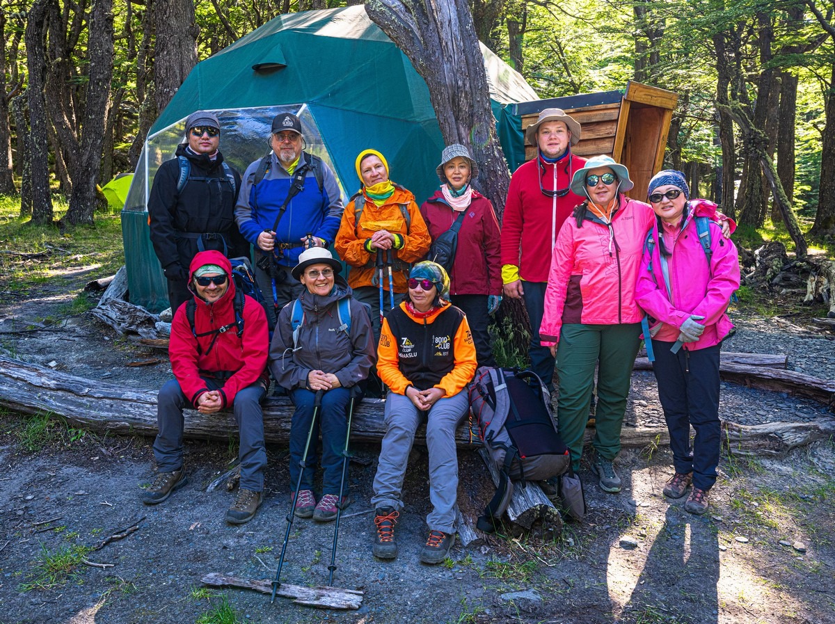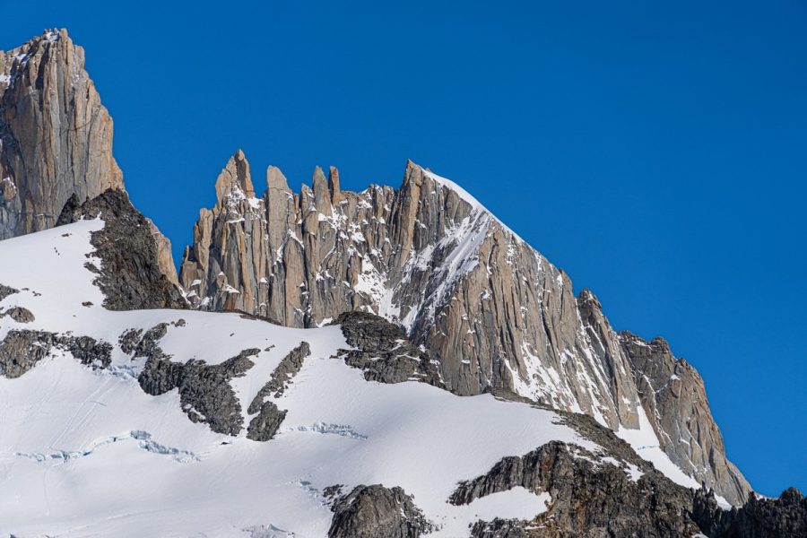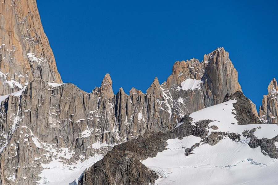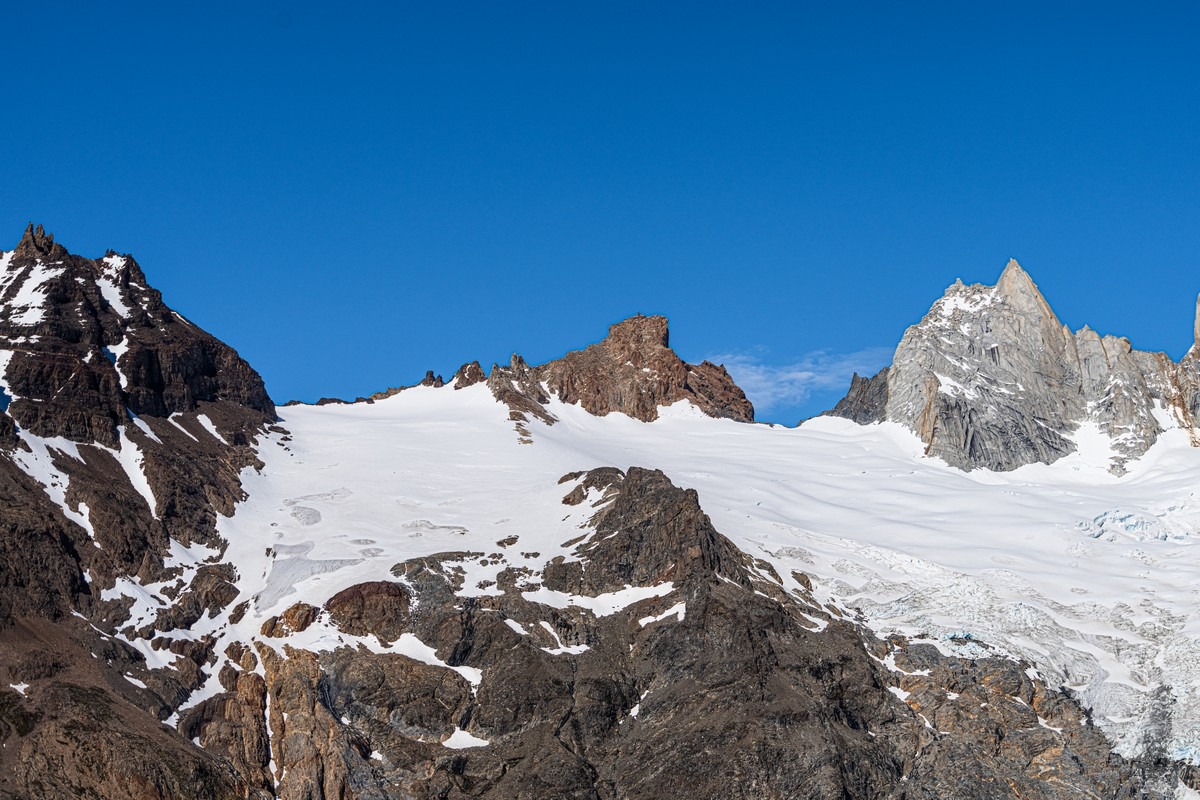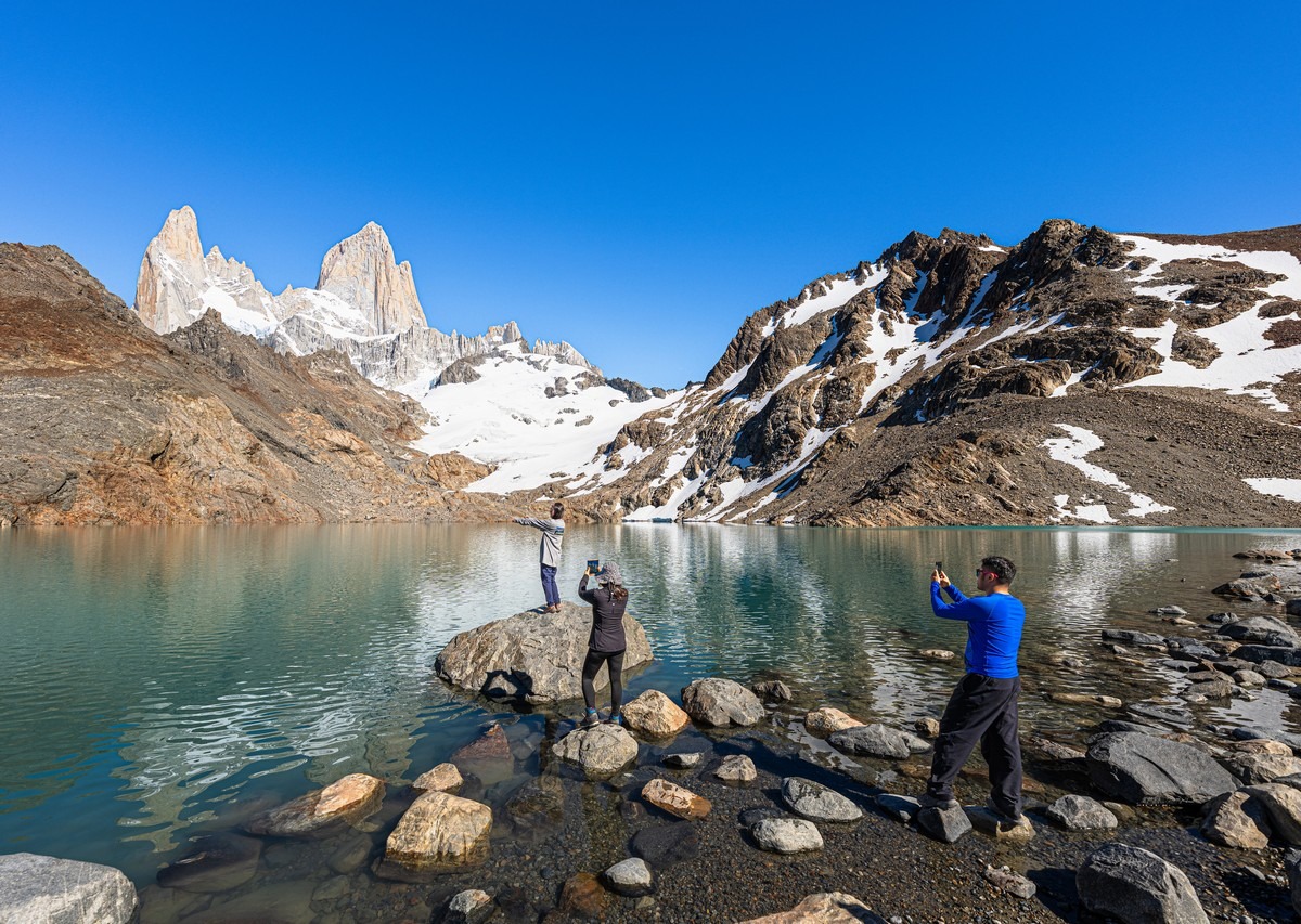 Что интересно: к озеру «Los Tres«, где самые шикарные виды на скалы, группы алчных туристов ежедневно в туристический сезон ходят тремя потоками. Мы оказались во втором: пошли на гору после завтрака — и на подъёме в противотоке сталкивались с теми, кто ходил туда посмотреть восход солнца (т.е. вышли они где-то в 4-5 утра). А когда мы спускались вниз после утреннего посещения, то наш нисходящий поток тормозился о тех, кто после завтрака пришёл из Эль-Чалтена (однодневный маршрут туда-сюда-обратно).