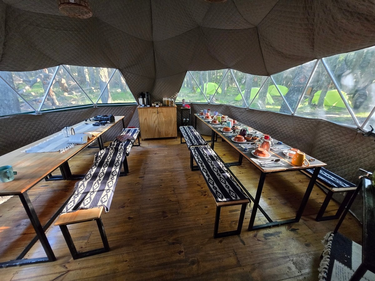 Вы ожидаемо спросите: а как там жить и где столоваться? На всё есть ответы. Во-первых, самые временно самостоятельные туристы могут заказать себе индивидуальный тур и жить в своих палатках со своей едой и также всё остальное необходимое тоже в рюкзак. Но такой образ жизни некоторым многим уже покажется немного некомфортным. Посему обращаемся за помощью к местным туристическим глемпингам — и там будет «под каждым ей листком был готов и стол, и дом». Вот, например: