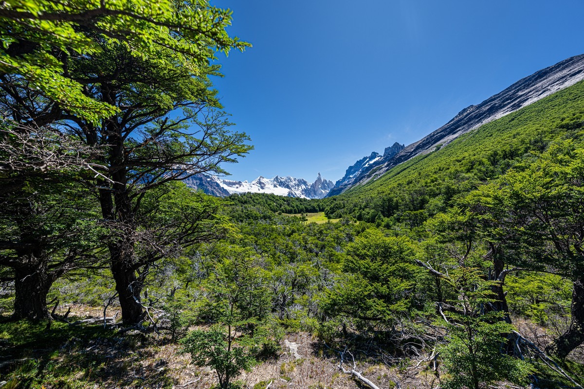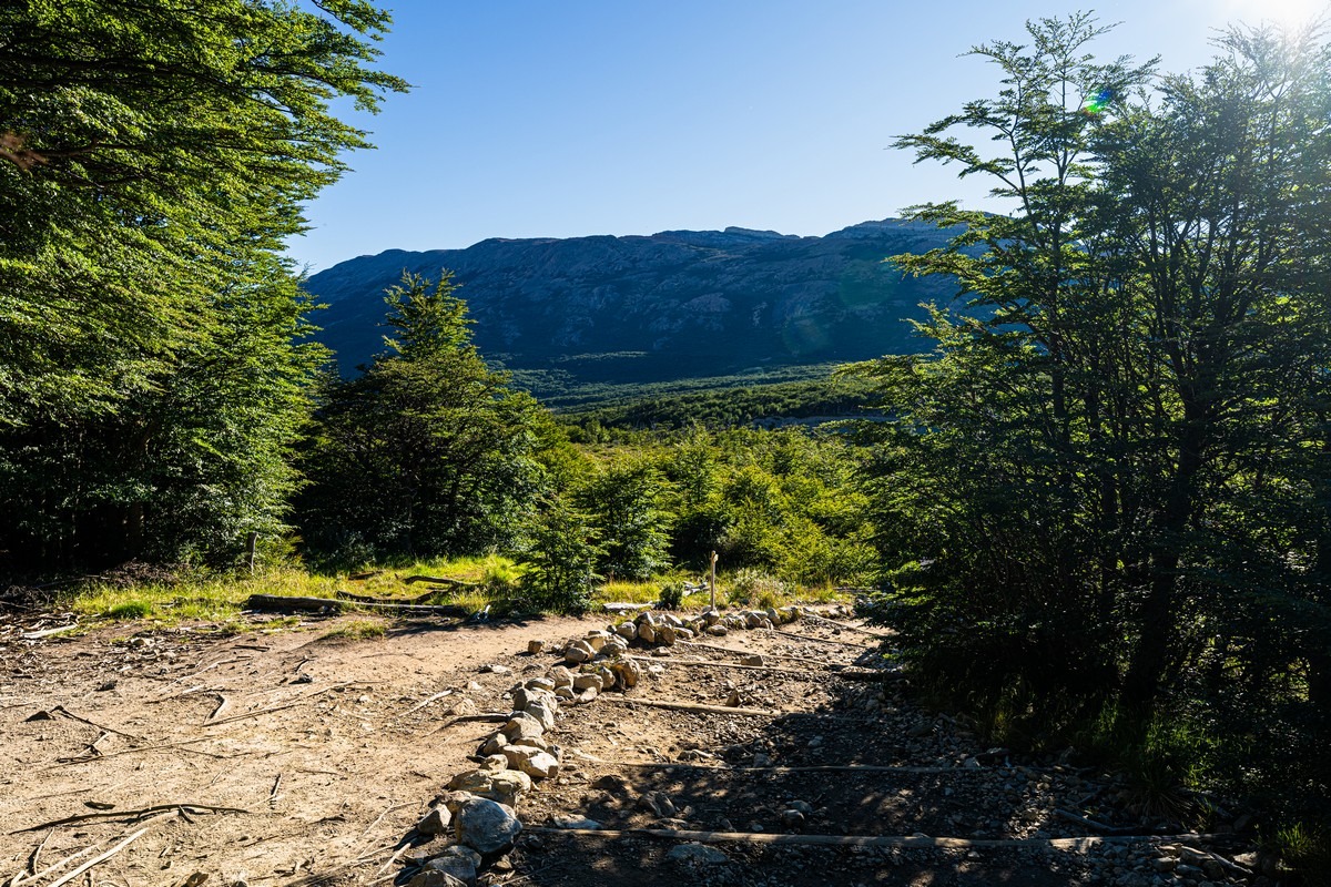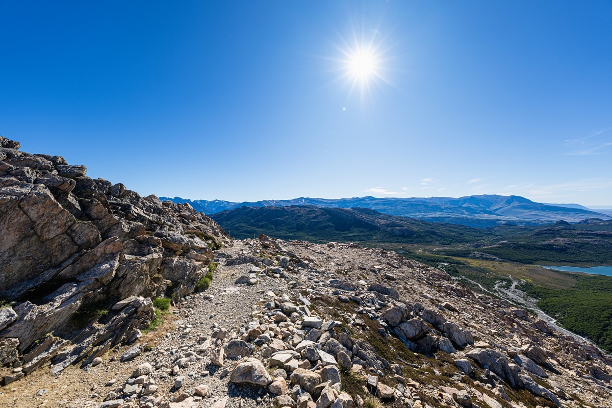 Первый день трека по эль-чальтенским патагонско-окрестностям мы шли мимо прекраснейших видов, но, увы, закрытых плотной облачностью. Однако мы перебороли трудности, небо раздулось, созерцательные виды частично открылись -> и это краткое содержание предыдущей (первой) серии нашей прогулки по горам-озёрам-ледникам вокруг Фицроя и Серро-Торре. Как было обещано, на второй день мы полезли к озёрам и волшебным видам Фицроя. Куда-то вон туда: